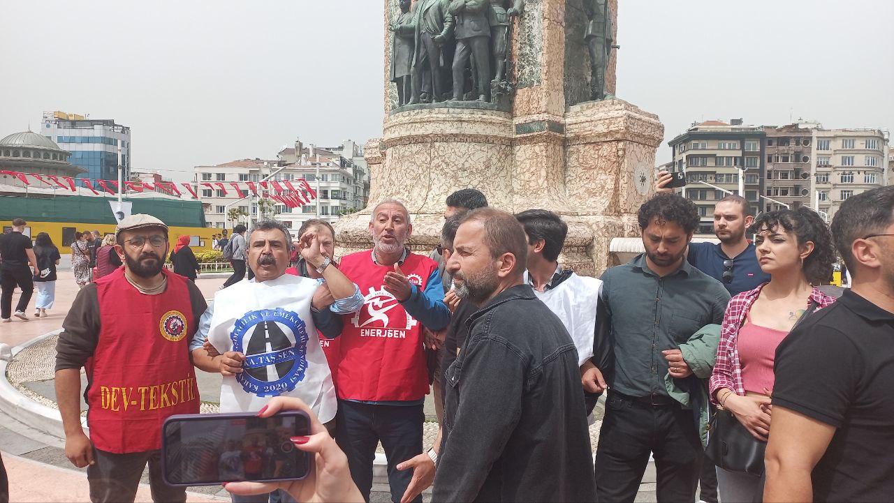 İstanbul Valiliği’nin 1 Mayıs için Taksim’i yasaklamasının ardından sendikalar Taksim Meydanı’nda 1 Mayıs’a çağrı yaptı. DİSK/Enerji-Sen, Özel Sektör Öğretmenleri Sendikası, Dev Tekstil, TOMİS ve KATAŞ-SEN Taksim Meydanı’na çıktı.
