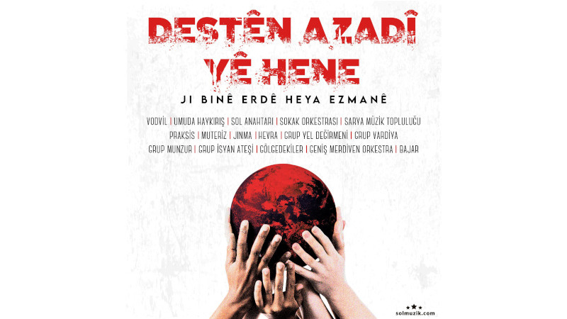 Solmuzik başlığıyla bir araya gelmiş ve geçtiğimiz Eylül’de “Kavga” albümünü yayımlamıştık. Her devrimci müzik grubu kendi özgünlüğünde yeni bir beste ile katılmıştı albüme. Aradan daha 1 yıl bile geçmeden yoğun bir çalışma ile ortaya koyduğumuz “Elleri Var Özgürlüğün” de yine farklı dil ve müzikal üslûplardaki üretimlerden oluşan bir albüm oldu. Bu albümler vesilesiyle devrimci müzik grupları arasında güçlü bir bağ ve dayanışma zemini inşa etmeyi başardık. Günümüzün devrim mücadelesinin şarkılarını üretmenin peşinde bir birliktelik oldu bizimkisi: Şan olsun, çok yaşasın!