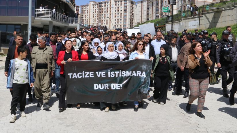 Dün (12 Nisan) yaşanan uzman çavuş tacizi bugün yürüyüşle protesto edildi. SES Şırnak Şubesi Eş Başkanı Murat Özbey, failin cezasızlık politikasından güç aldığını belirtirken, DEM Partili Newroz Uysal Aslan, yaralı olarak gösterilen failin hastaneye kaldırıldıktan sonra polis tarafından kaçırılarak, korumaya alındığını söyledi. Eylemde “Tacize ve istismara dur de” yazılı pankart taşındı.