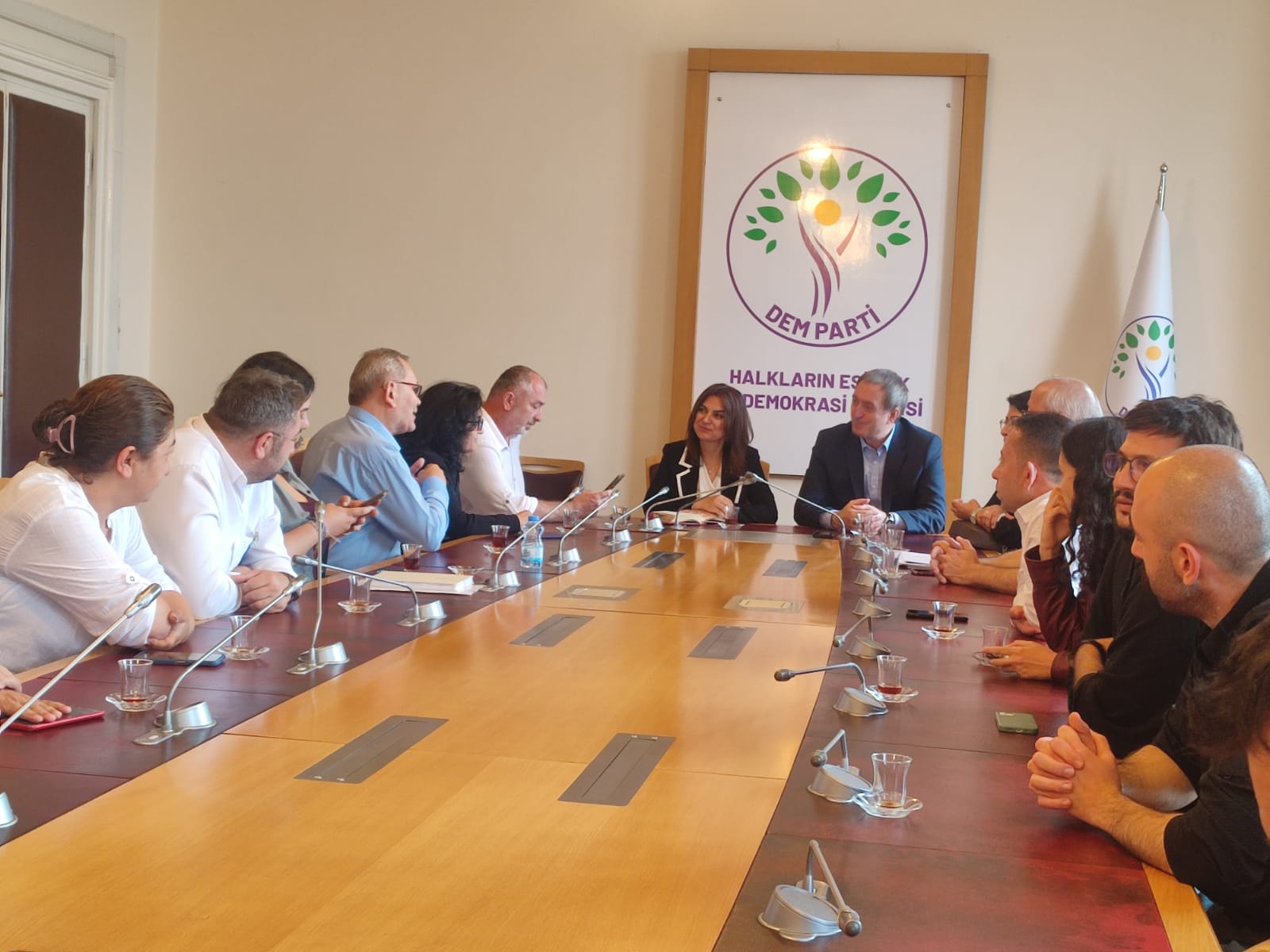 Grup toplantılarının ardından DEM Parti ile yapılan görüşmede aileleri DEM Parti Eş Genel Başkanı Tuncer Bakırhan ve DEM Parti Milletvekili Gülistan Kılıç Koçyiğit karşıladı. Bakırhan ve Kılıç, sağlık durumu iyi olmayanlar ve öğrenci olanlar başta olmak üzere tüm hukuksuz tutuklamalar için “artık yeter” demek gerektiğini söylerken asıl suçun Saraçhane’de Bozdoğan Kemeri’ne çekilen barikat olduğunun altını çizdi. Bakırhan ve Kılıç her zaman dayanışma içinde olacaklarını ve davayı takip edeceklerini ekledi.