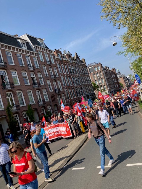 2015 yılında FNV Metal konferansında alınan kararla 1 Mayıs kutlanmaya başlandı. İlk kez emek örgütleri 1 Mayıs’ı organize etmede sınıfın temsilcileri olarak adım attı. Bu tabii ki sendika kadrolarının uzun yıllar süren mücadelesinin kazanımı oldu. FNV sendikası farklı sektörlerde çalışan işçi ve emekçileri 1 Mayıs’a katmaya çalışıyor. Diğer sendikalar internet sitelerinde günün anlamıyla ilgili olarak bazı açıklamalar yapıyorlar. 1 Mayıs eyleminde birkaç bayrak ve amblemle yürüyorlar. 1 Mayıs normal iş gününe denk geldiğinde FNV katılmak isteyen üyelerine işyerinde resmi olarak başvurarak izin alıyor. Yani işçi ve emekçilerin tamamen kitlesel katılım şansı yok.