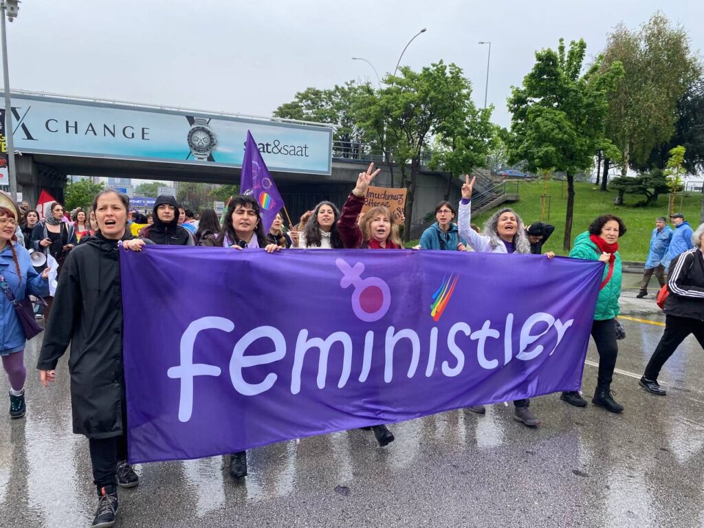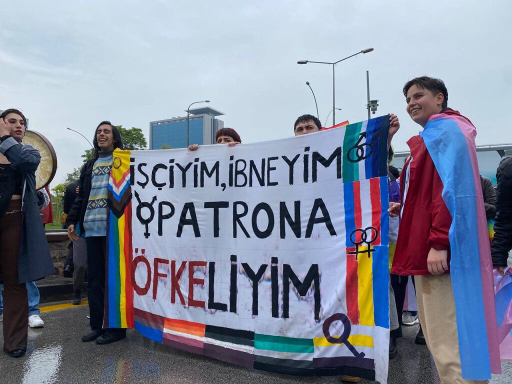 Feministler Ankara 1 Mayıs’ına ilk defa “feministler” yazılı pankartları ile çıkarken Ankara Onur Haftası Komitesi de yürüyüşte yer aldı.