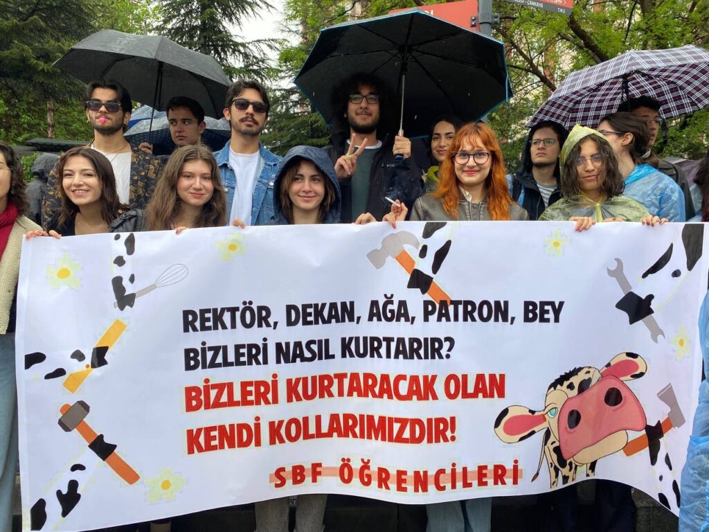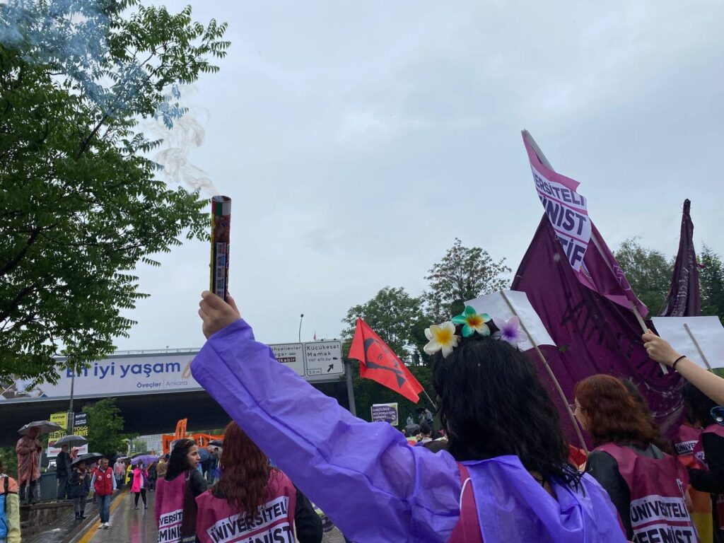 Art arda girilen iki seçimden sonra yapılan ilk 1 Mayıs’ta lise örgütleri MESEM’lerle çocuk işçiliğin teşvik edilmesine dikkat çekti. Üniversiteliler kortejlerinde üniversitelerinde Kayyum rektörler tarafından yasaklanmaya çalışılan şenliklere/bayramlara dikkat çekti. SBF’li öğrenciler Ankara Üniversitesi’nin engellemeye çalıştığı İnek Bayramı’na dair bir pankartla çıkarken ODTÜ’lü öğrenciler ise şenliklerinin Devrim sahnesinde yapılmasının engellenmesi çabasına yönelik pankart açtı. ODTÜ’lüler sık sık “Şenlik ODTÜ’nün, ODTÜ bizimdir”, “Verşan sussun, Devrim konuşsun” sloganları attı.