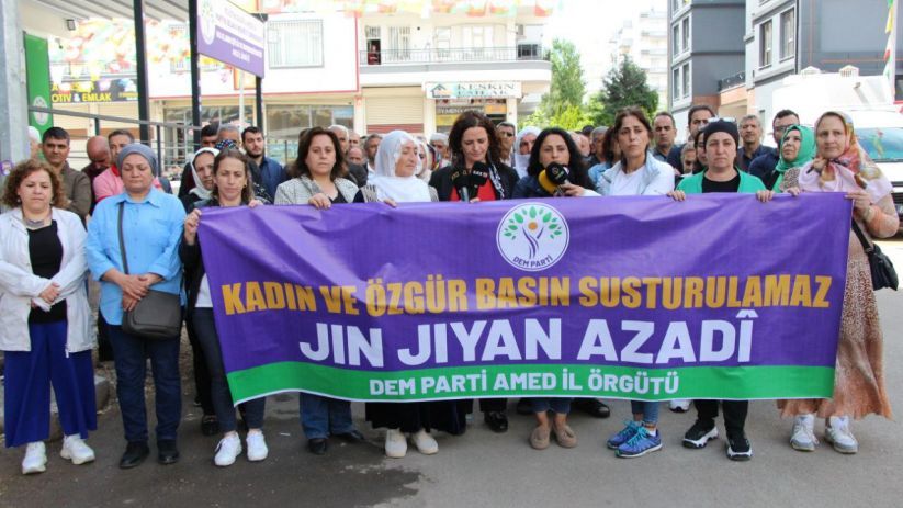 Halkların Eşitlik ve Demokrasi Partisi (DEM Parti) Diyarbakır İl Örgütü, Özgür Basın’a yönelik artan baskı ve gözaltı operasyonlarına ilişkin il binası önünde basın açıklaması gerçekleştirdi. Açıklamada “Kadın ve Özgür Basın susturulamaz”, “Jin jiyan azadî” yazılı pankartlar taşınırken, çok sayıda partilinin katıldığı açıklamada DEM Parti Diyarbakır İl Eş Başkanı Pınar Sakık Tekin konuştu.