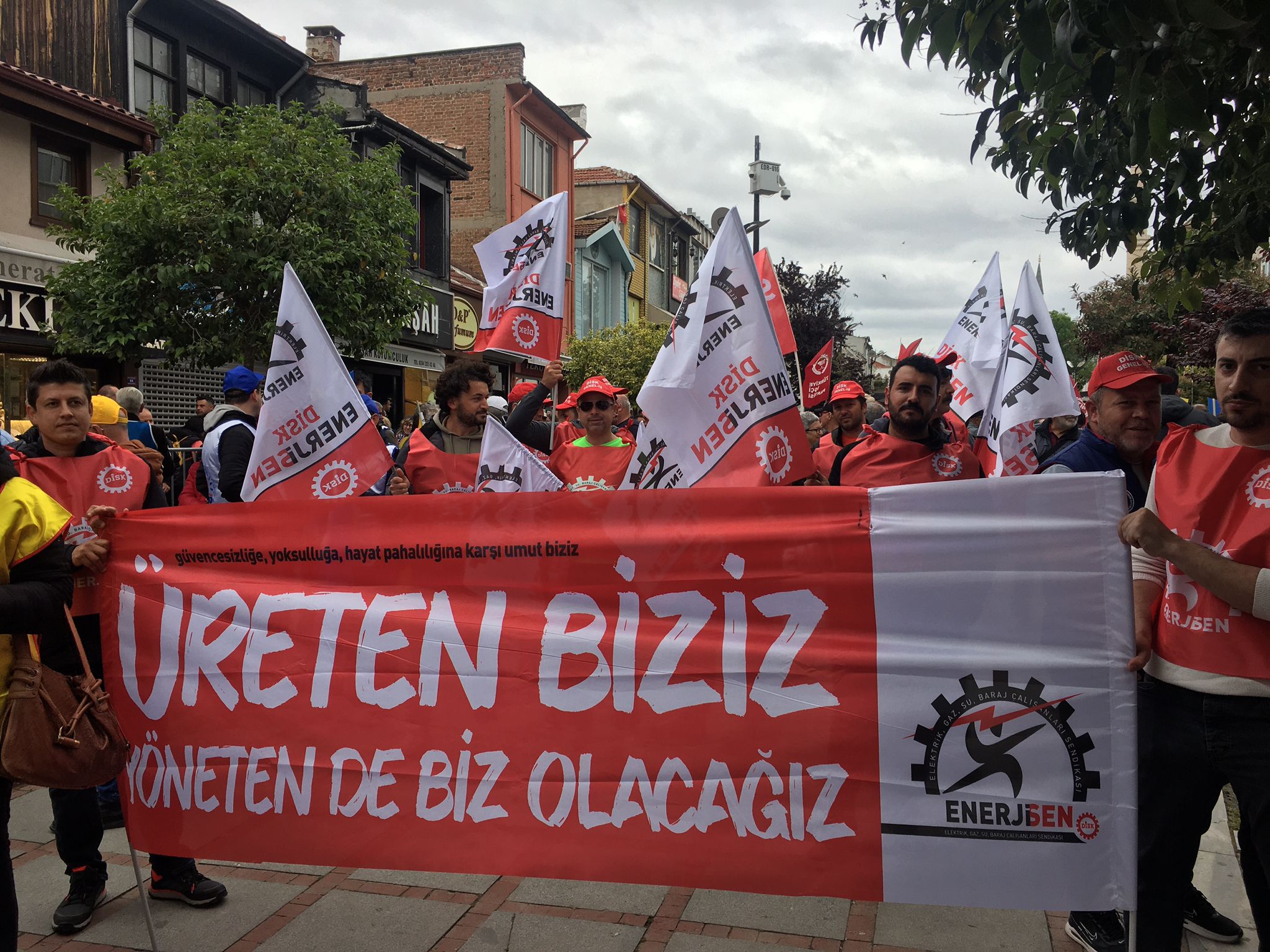 Şükrüpaşa İlkokulu önünde buluşan Edirneliler sloganlarla Saraçlar Meydanı’na yürüdü. Yürüyüş de miting de geçen yıla göre daha kalabalık geçti. Geçen seneden farklı olarak DİSK/Enerji-Sen ve Öğrenci Kolektifleri de alanda yerini aldı.