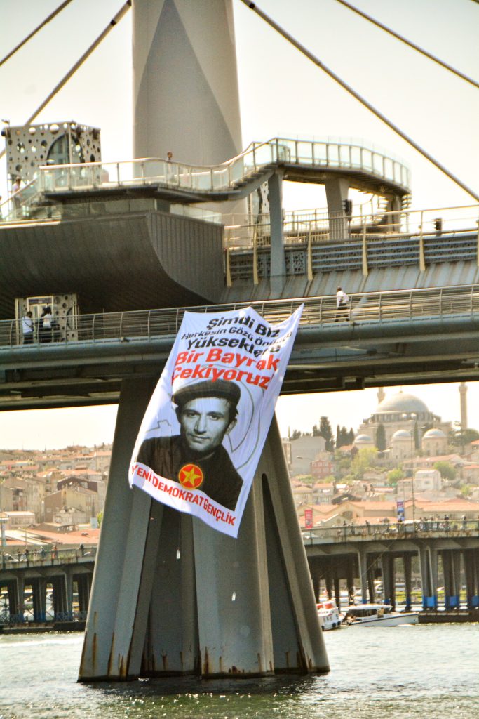YDG, İbrahim Kaypakkaya’yı anmak amacıyla Haliç Metro Köprüsüne pankart astı.