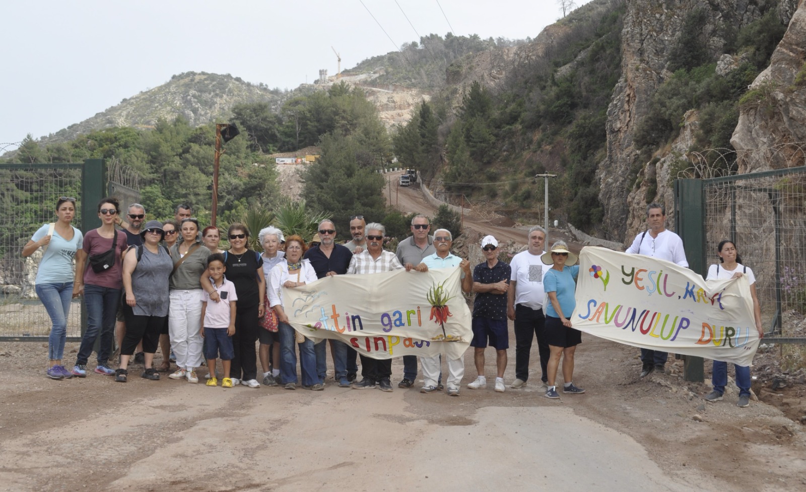 Marmaris Kent Konseyi ve Marmaris Ekolojik Mücadele Komitesi dün (18 Mayıs) İçmeler ile Marmaris’ten gelen yurttaşlarla birlikte yetkilileri göreve çağırmak için Aşıklar Tepesi’nde buluştu. İnşaat alanına ulaşmak için Sinpaş’ın işgal ve talanı altındaki Milli Parklar Müdürlüğüne ait 800 metrelik yolu yürüyen yaşam savunucuları yürüyüş sırasında mücadelenin başından beri neler yaşadıklarını, Sinpaş’ın milli parkta nasıl doğa yıkımı yaptığını, bu duruma kimlerin sessiz kaldığını, yetkililerin bu yağmayı cesaretlendirdiğini halkla bir kez daha paylaştı.