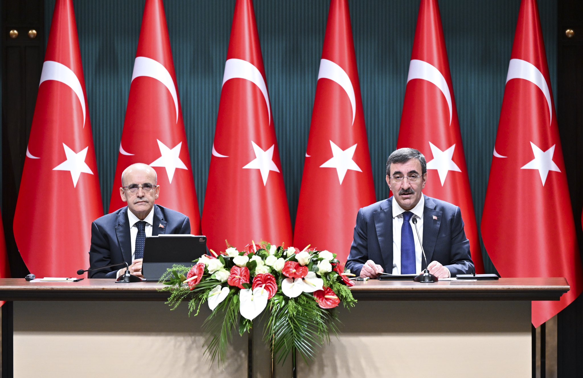Cumhurbaşkanı Yardımcısı Cevdet Yılmaz ile Hazine ve Maliye Bakanı Mehmet Şimşek yaptıkları basın toplantısıyla Kamuda Tasarruf ve Verimlilik Paketi’ni kamuoyuyla paylaştı.