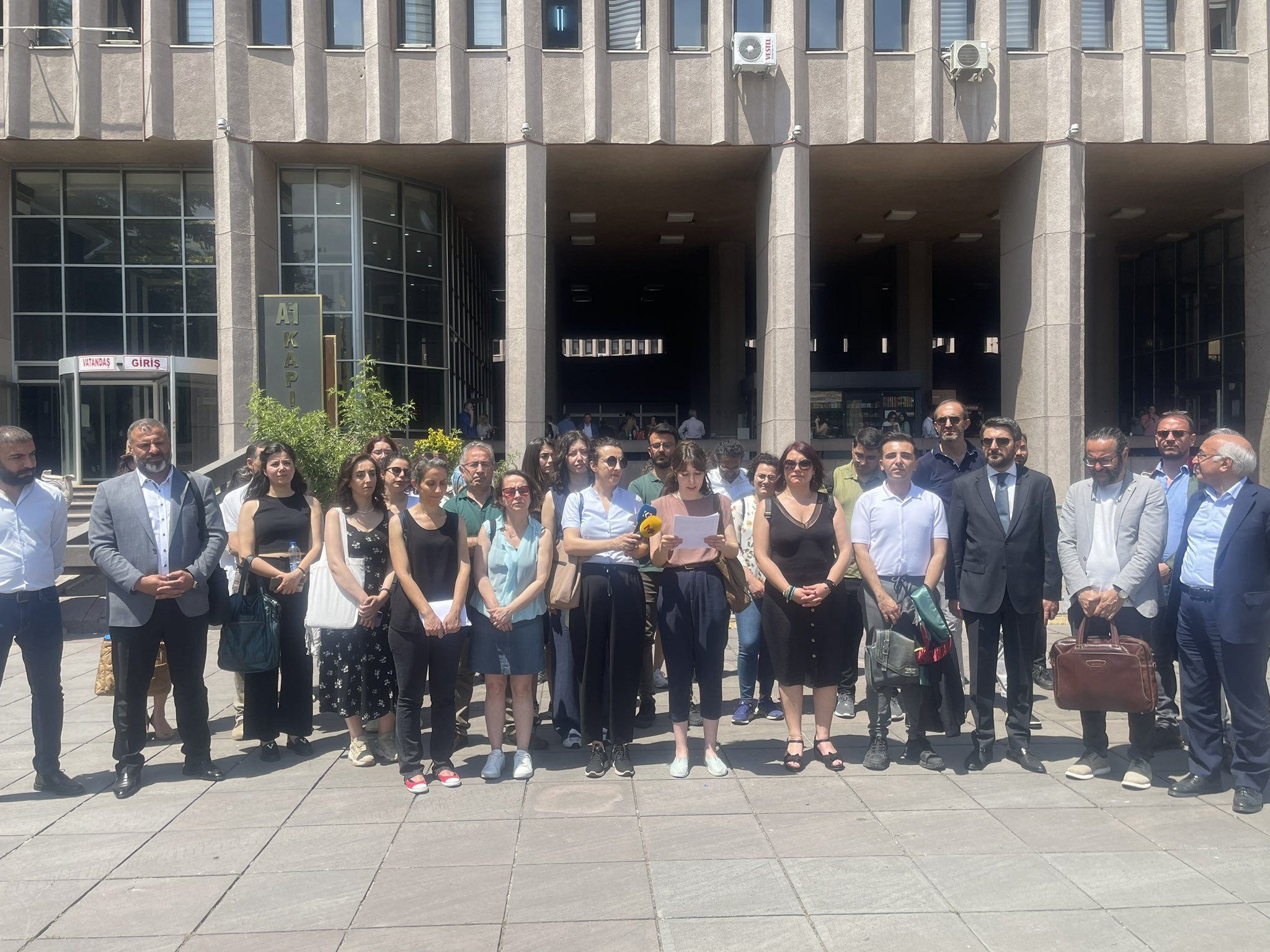 Hakkari Belediyesi’ne kayyum atanmasına karşı Ankara’da avukatlar adliye önünde açıklama yaptı. Adalet İçin Hukukçular, ÇHD Ankara Şube, Demokrasi İçin Hukukçular, Hukukçu Dayanışması, ÖHD Ankara Şube ve Toplumsal Hukuk’un çağrısıyla bir araya gelen avukatlar, devletin Kürt halkını her zaman hukuki koruma alanının dışında tuttuğunu, Kürtler açısından temel vatandaşlık haklarından faydalanmayı “Kürt olmaktan vazgeçme” şartına bağladığını ifade etti.
