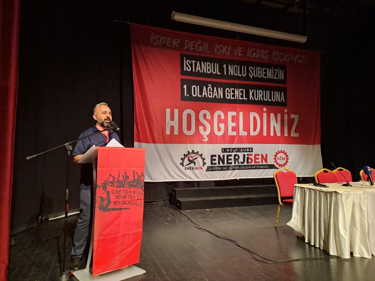 İstanbul Büyükşehir Belediyesi’ne bağlı kurumlarda çalışan enerji işçilerinin üye olduğu DİSK/Enerji-Sen İstanbul 1 No’lu Şube, ilk genel kurulunu yaptı. Genel kurulda taşerona, güvencesizliğe ve sarı sendikalara karşı mücadele vurguları öne çıktı