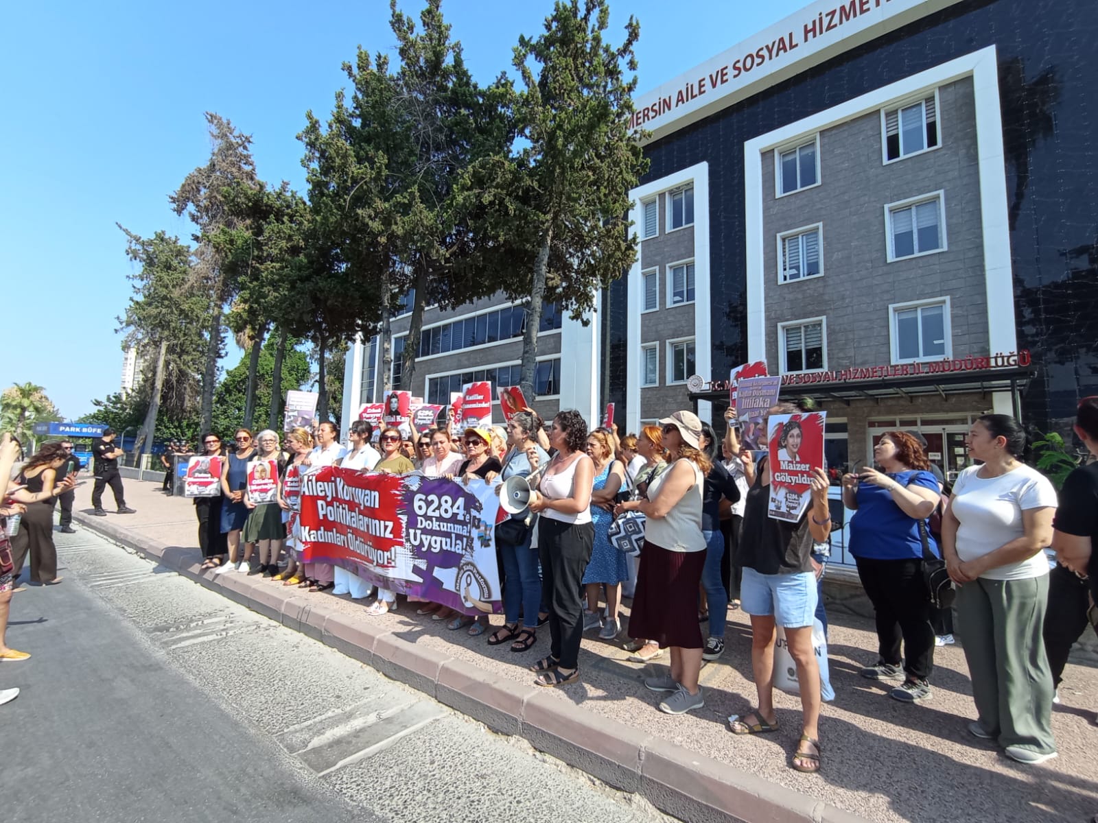 Mersin’de kadınlar Aile ve Sosyal Hizmetler İl Müdürlüğü önünde