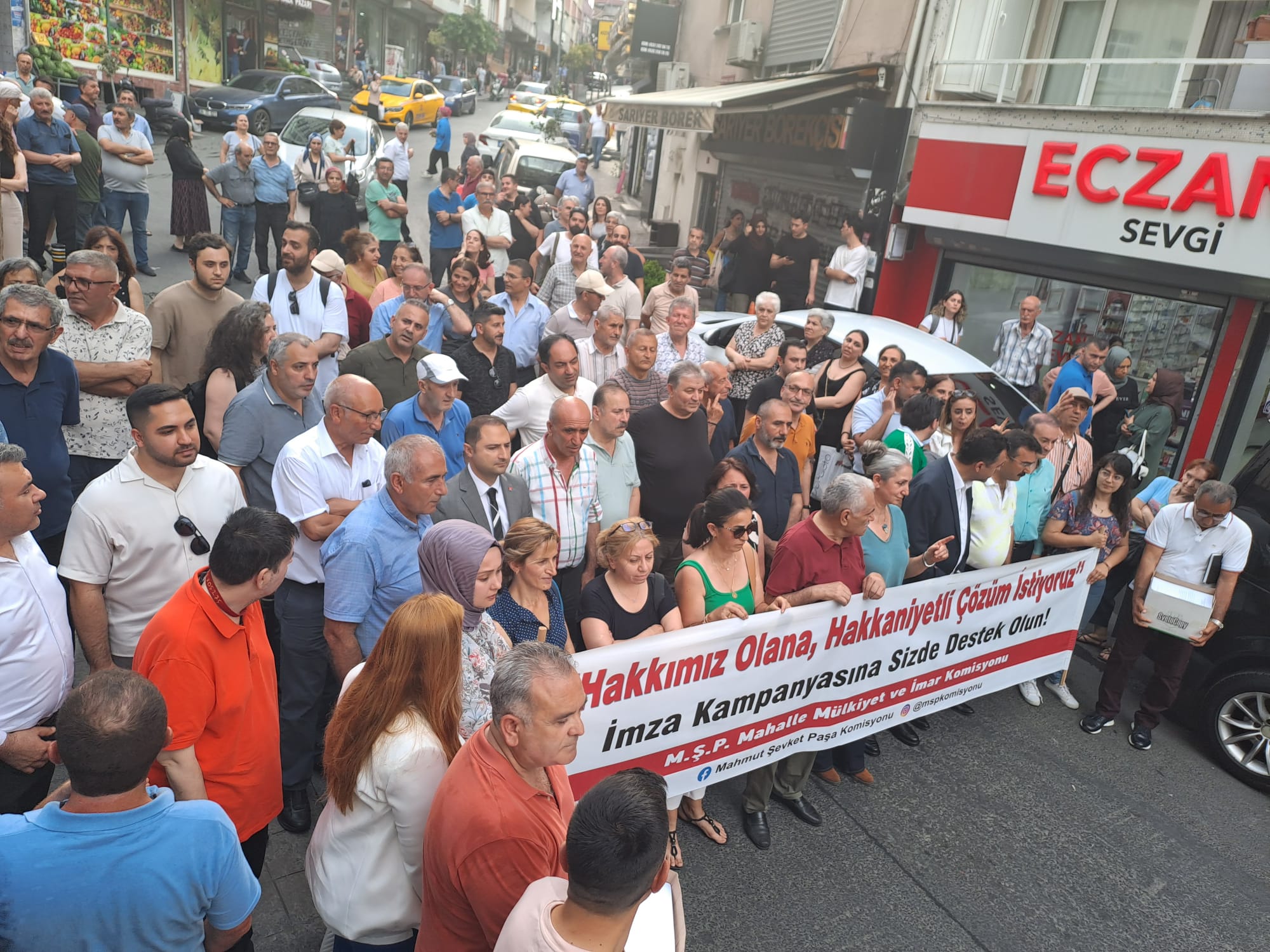 Komisyonun çağrısıyla bugün Mahmut Şevket Paşa Mahallesi Muhtarlığı önünde bir eylem yapıldı. Hem süreç özetlendi hem talepler yinelendi. Mahmut Şevket Paşa Mahallesi sakinleri, kendilerine son tarih olarak verilen 15 Temmuz öncesinde bu sorunun çözümü konusunda bakanlığın adım atmasını talep ediyor.