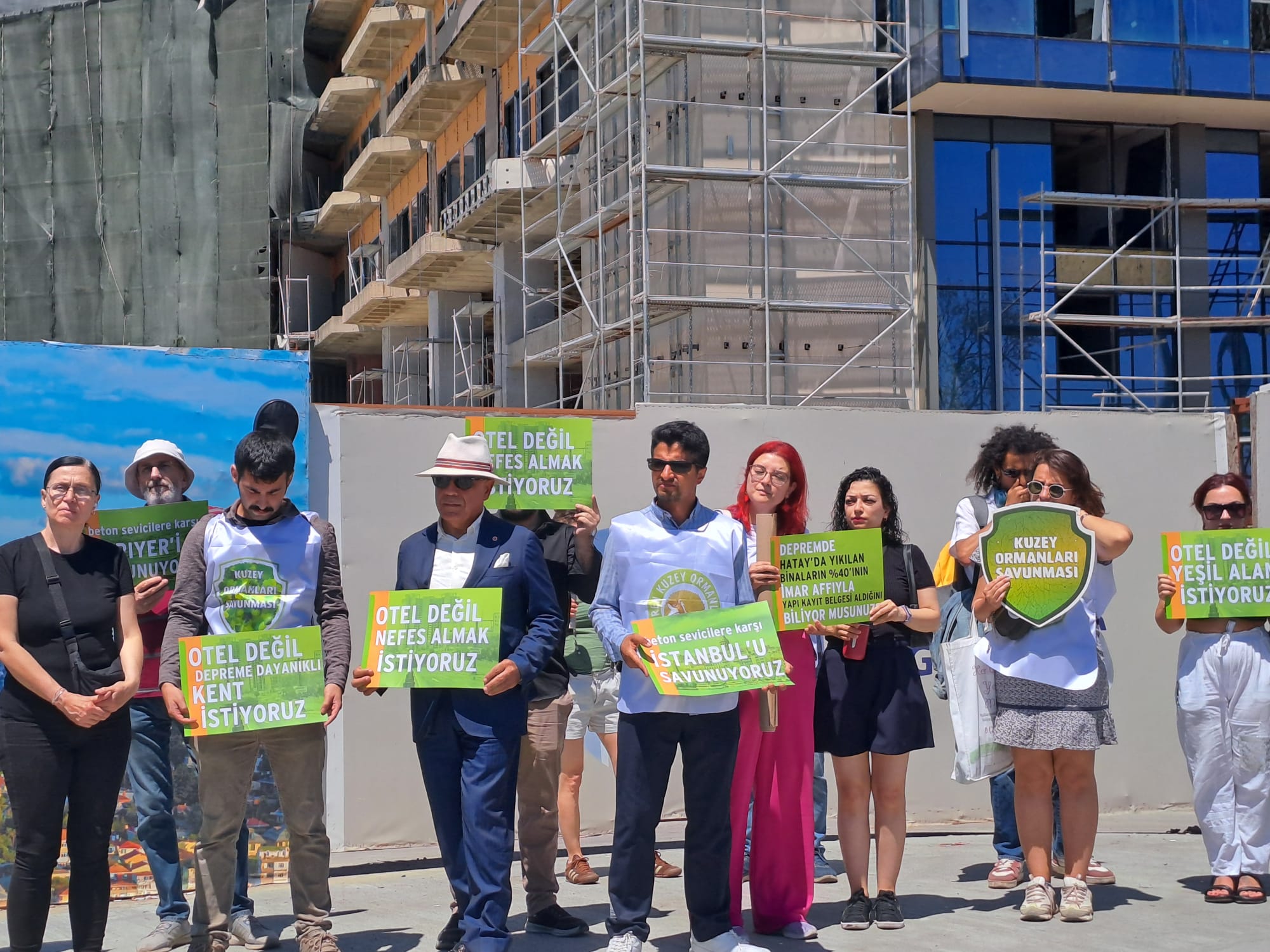 Sarıyer Hacıosman’da 35 yıldır bitirilmeyen, otel olarak başlayıp rezidansa çevrilmek istenen inşaat, onca itiraza, çürük raporlarına rağmen devam ediyor. Mahkemenin yıkım kararı hakkında yürütmeyi durdurma kararı çıkaran şirket, inşaatı yeniden başlattı. Sarıyer Belediyesi karara itiraz etti. Atatürk Kent Ormanı Gönüllüleri de devam eden inşaatın önünde eylemdeydi.