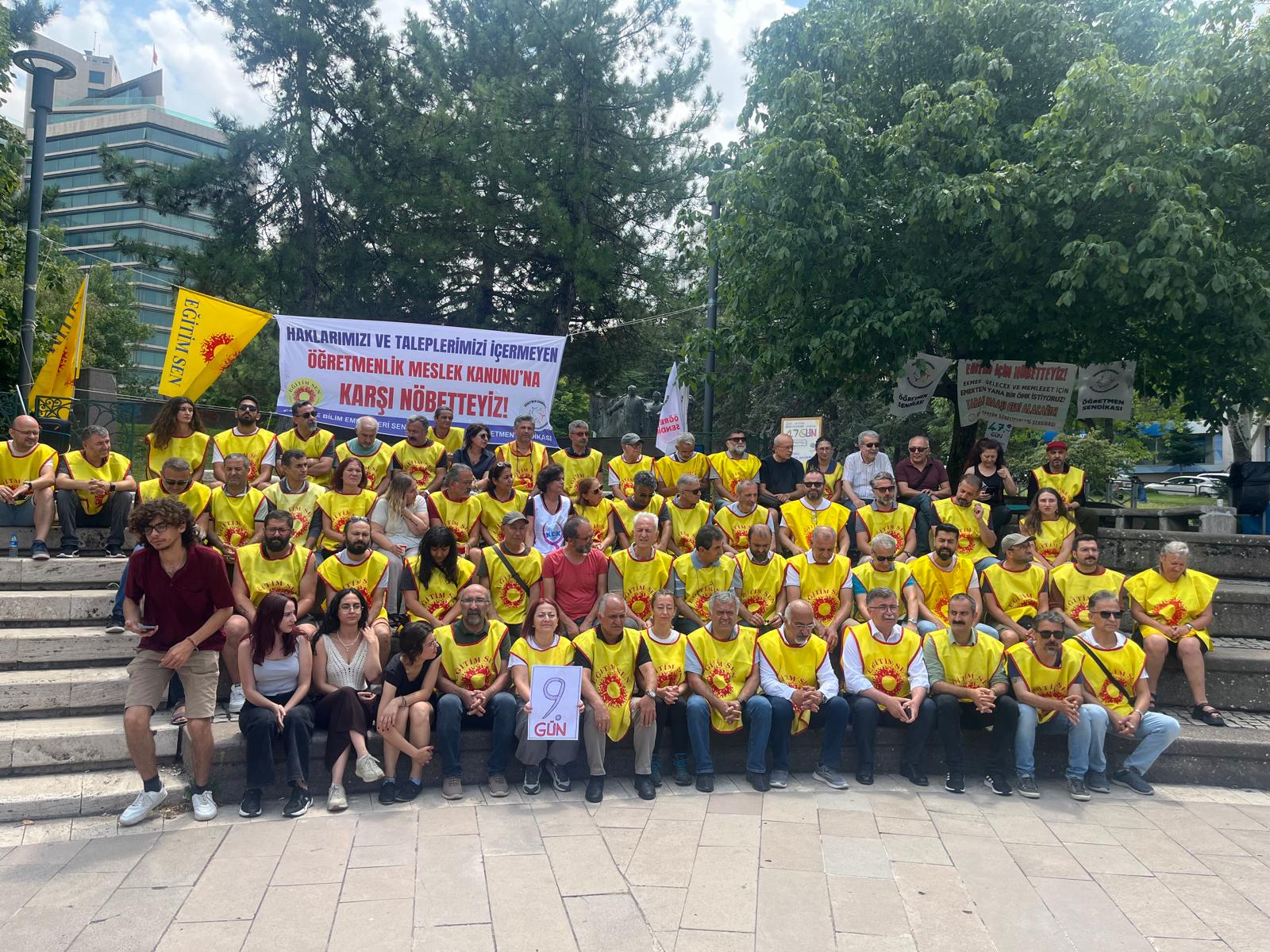Eğitim Sen, Öğretmenlik Meslek Kanunu Meclis’te görüşülmeye devam ettiği süre boyunca Meclis Parkı’ndaki nöbetin devam edeceğini duyurmuştu. Öğretmenlerin başlattığı nöbet bugün 9. gününe girdi.