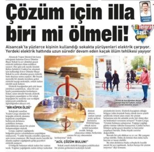 İzmir’de iki kişi elektrik akımına kapılarak hayatını kaybetti. Olayın yaşandığı yere dair elektrik dağıtım şirketine defalarca şikayet yapılırken yerel gazeteler “Çözüm için illa biri mi ölmeli” başlığı ile konuyu gündeme getirmişti