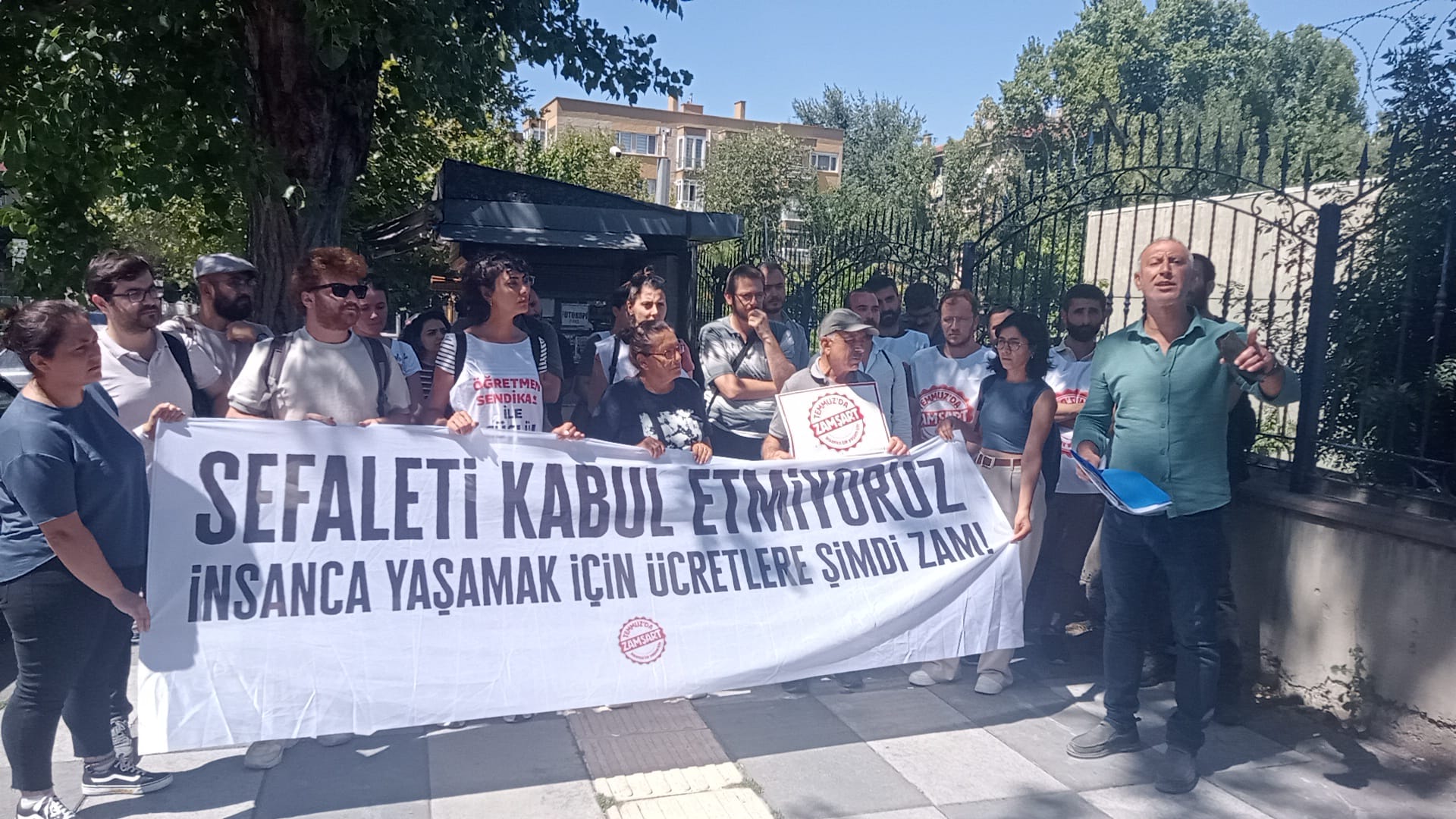 Çalışma ve Sosyal Güvenlik Bakanlığı önünde yapılan açıklamada 17 bin 2 lira olan asgari ücretin de 12 bin 500 lira olan en düşük emekli maaşının da açlık sınırının altında kaldığına, sadece kiraların dahi bu düzeyin üzerine çıktığına ve iktidarın yaşanan sefalete yönelik itirazlara kulaklarını tıkadığına dikkat çekildi.