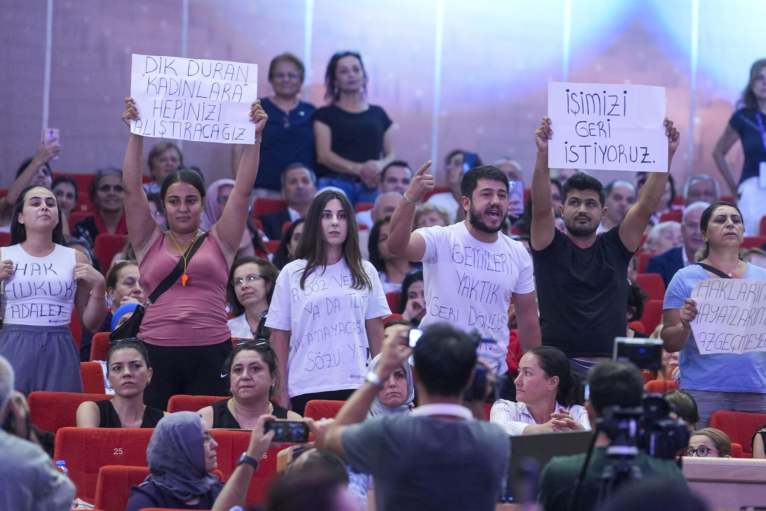 CHP Genel Başkanı Özgür Özel sahnede konuşma yaparken Çiğli Belediyesi’nin bir mesajla işten çıkardığı ve 16 Temmuz’dan bu yana CHP Genel Merkezi önünde seslerini duyurmaya çalışan işçileri, güvenlikçiler eliyle salondan çıkarttırdı.