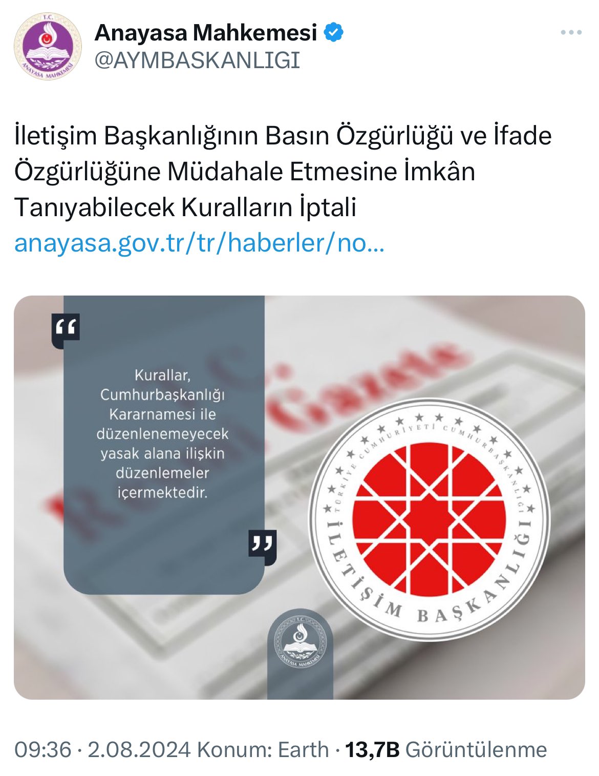 Anayasa Mahkemesi’nin paylaşımının silinmesinin yanı sıra AYM’nin resmi sitesine de ulaşılamıyor.