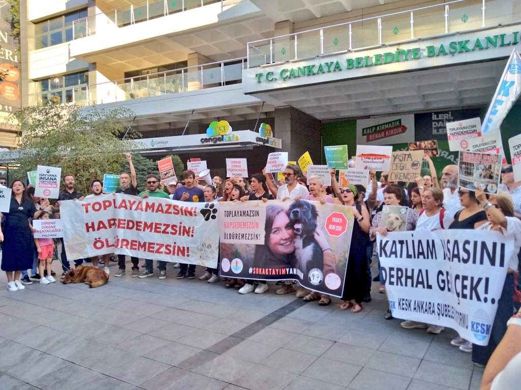 Sakarya Caddesi’nde düzenlenen eylemde kanunun geçmesinin ardından Niğde’de, Altındağ’da, Kocaeli’de ve Edirne’de yaşanan hayvan katliamları ile CHP Genel Başkanı Özgür Özel’in kendi belediyelerinde yasayı uygulamayacaklarını söylese de Ankara Büyükşehir Belediyesi’nin Birlik Mahallesi’nde sokakta yaşayan köpekleri topladığı hatırlatıldı.
