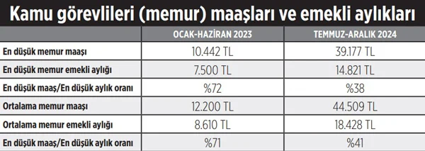Yasanın en büyük mağdurları kuşkusuz memur emeklileri. Yasadaki tuzak memur emekli aylıklarında şok bir düşüşe yol açtı. Cumhurbaşkanlığı Strateji Bütçe Başkanlığı (SBB) verilerine göre 2023 yılı başında maaşın yüzde 72’si kadar olan en düşük memur emekli aylığı, Temmuz 2024’te maaşın yüzde 38’ine geriledi. Ortalama memur emekli aylığı ise maaşın yüzde 71’inden yüzde 41’ine geriledi. Yasada memur emeklilerine kurulan tuzağın bile isteye yapıldığı çok net. Bu yolla 5510 sayılı yasa yanında memur emekli aylıklarının düşürülmesinin yeni bir yolu daha icat edilmiş oldu.