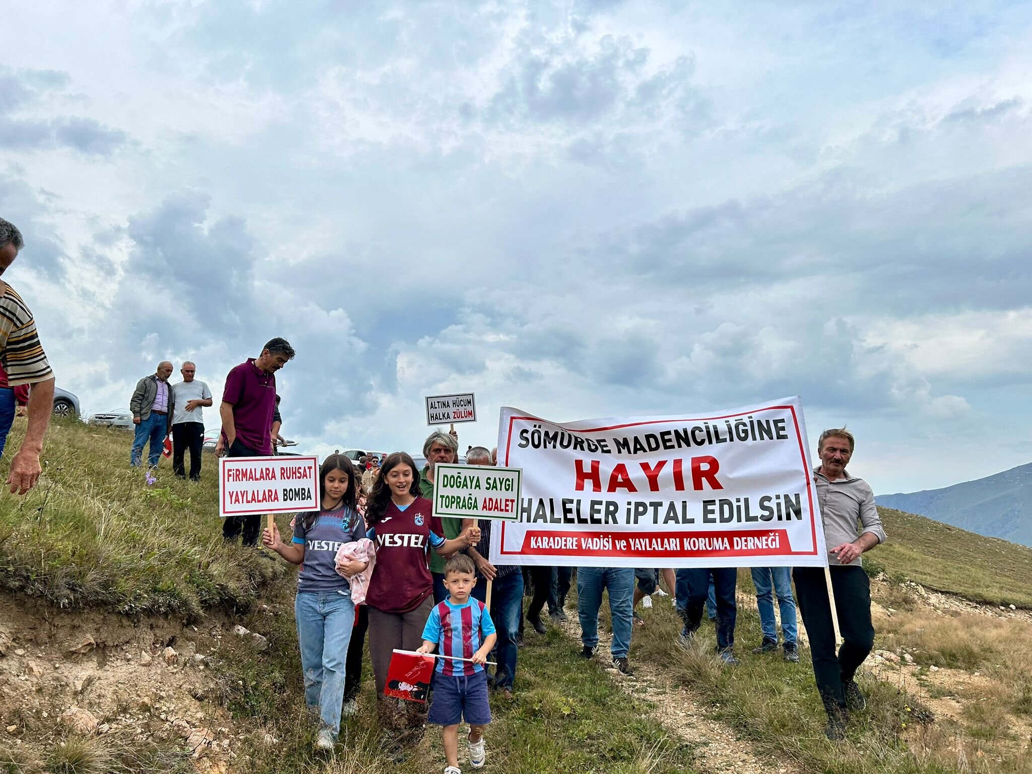 Trabzon’da Araklı Karadere Vadisi Erikli Yaylası’nda ihaleye çıkan altın madeninin sahasına çıkan bölge halkı ve yaşam savunucuları, keşif için sondaj çalışması yapılan alanlara fidanlar dikerek maden projesine tepki gösterdi