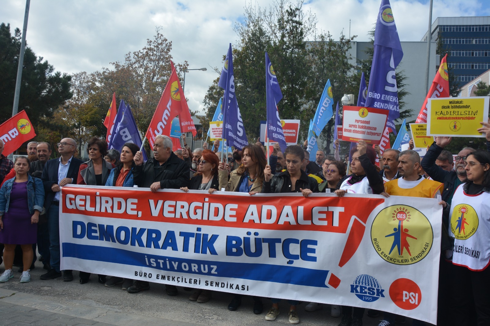 Büro Emekçileri Sendikası (BES), Hazine ve Maliye Bakanlığı önünde “Gelirde ve vergide adalet” talebiyle eylem yaptı.