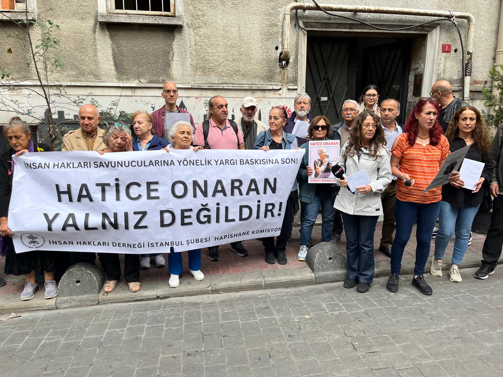 İnsan Hakları Derneği İstanbul Şubesi Hapishane Komisyonu, bugün (16 Ekim) saat 13.30’da dernek binaları önünde hasta mahpus Hatice Onaran için açıklama yaptıktan sonra kartlarını postaladı.