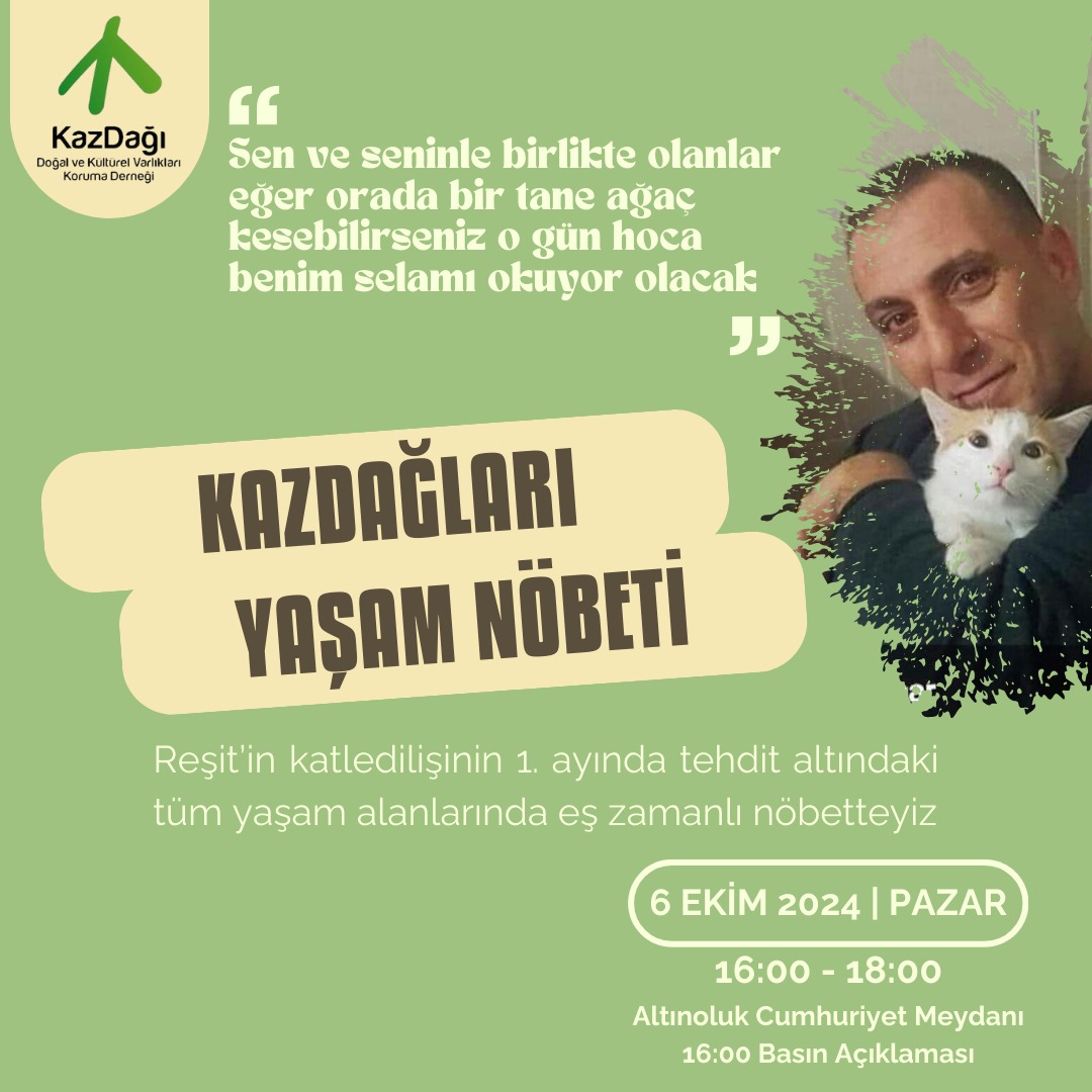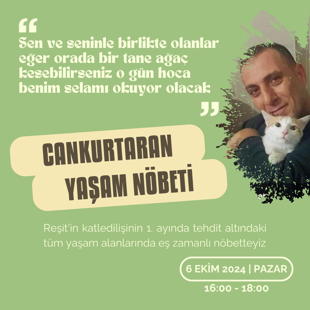 Reşit Kibar’ın Artvin Cankurtaran’da ağaç kesimini önlemek isterken uğradığı silahlı saldırıda yaşamını yitirmesinin üzerinden bir ay geçti. Reşit Kibar’ın da köyü olan Çifteköprü’de Çifteköprü Tarımsal Kalkınma Kooperatifi, Kibar’ın katledilişinin birinci ayında Cankurtaran’da yaşam nöbetinde olacaklarını açıklamış ve ülkedeki doğası için mücadele eden herkesi de aynı gün mücadele ettikleri yerlerde yaşam nöbeti tutmaya davet etmişti.