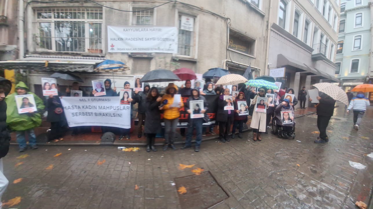 İnsan Hakları Derneği İstanbul Şubesi Hapishane Komisyonu, 661. F Oturması’nda “Hasta kadın mahpuslar serbest bırakılsın” talebi ile bir araya geldi. 25 Kasım “Kadına Yönelik Şiddetle Mücadele Günü”ne giderken kadına yönelik şiddete dikkat çeken komisyon; kadınların hapishanelerde maruz kaldıkları kötü muamelelere ve şiddete dikkat çekti