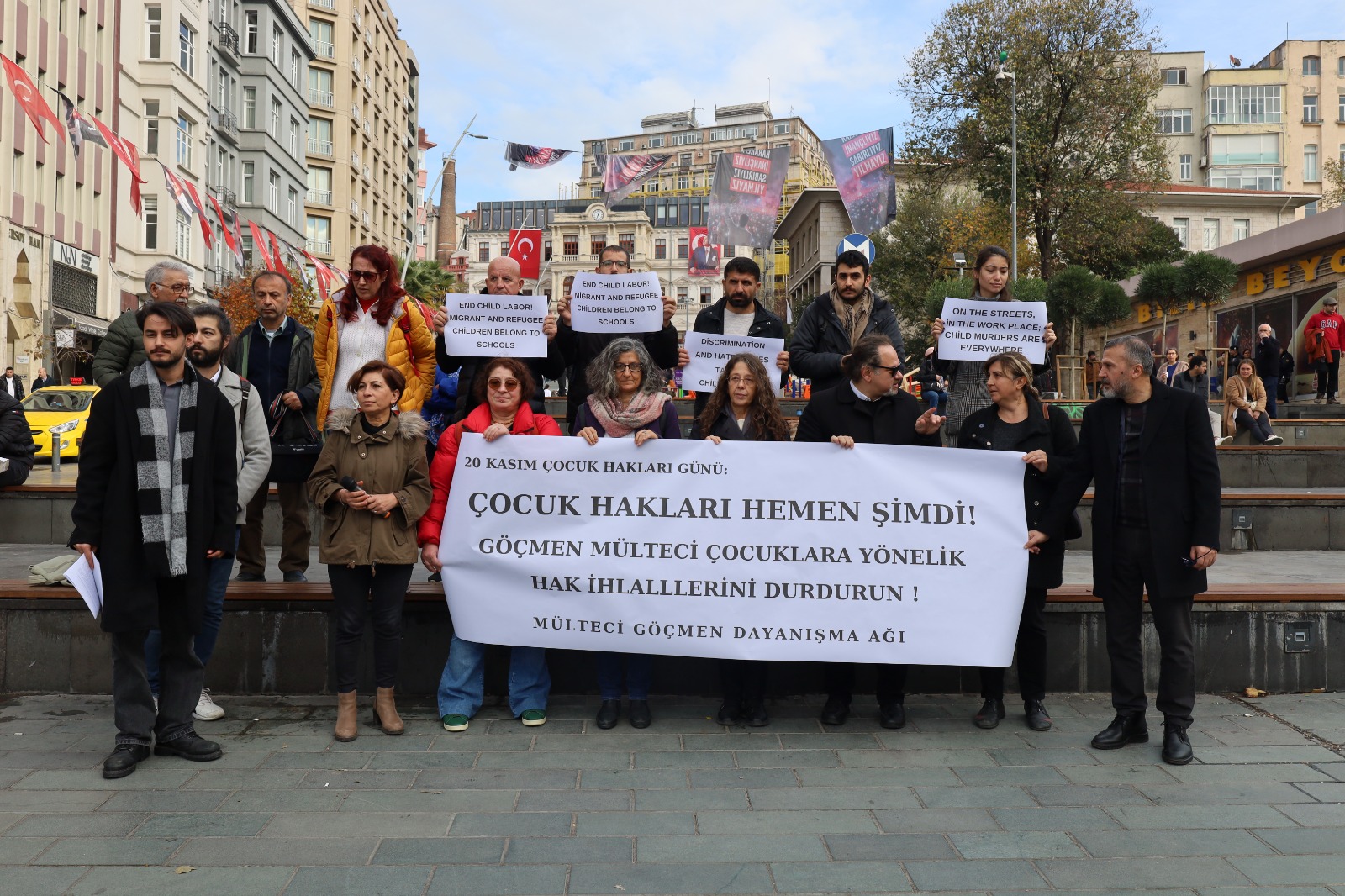Göçmen Mülteci Dayanışma Ağı, Dünya Çocuk Hakları Günü dolayısıyla Şişhane Meydanı’nda bir araya gelerek “Göçmen mülteci çocuklara yönelik hak ihlalleri durdurulsun” dedi