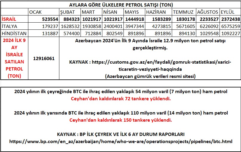 Meclis Genel Kurulu’nda konuşan AKP’li Özlem Zengin, Azerbaycan petrolünün Bakü-Ceyhan Boru Hattı üzerinden İsrail’e taşındığını ve Türkiye’nin bu taşımadan kazanç elde ettiğini inkâr etti. DEM Parti’li Ömer Faruk Gergerlioğlu ise British Petrol’ün (BP) verisini paylaşarak Zengin’in ve Enerji ve Tabii Kaynaklar Bakanlığı’nın verileriyle petrol satışını yapan Azerbaycan’ın Gümrük Komitesi’nin verilerinin çelişiğini ifade etti