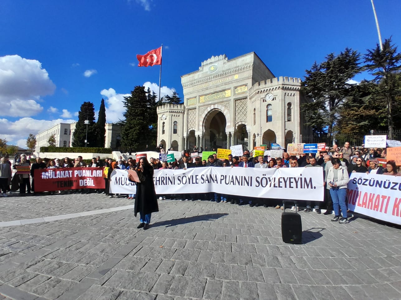 Mülakat mağduru öğretmenler “Puanıma dokunma, mülakatsız atama”, “Algı değil hakikat, adaletsiz mülakat” sloganlarıyla Beyazıt Meydanı’nda bir araya geldi. Öğretmenler “Atama hakkımı ver” diyerek İstanbul İl Milli Eğitim Müdürlüğü önünde başlattıkları direniş üzerine birçok ilden gelen öğretmenlerle buluştu.