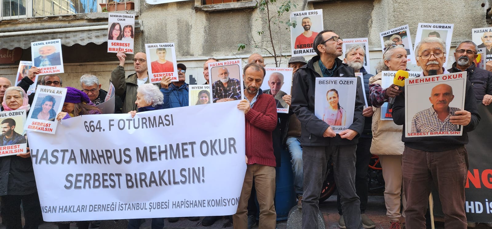 İnsan Hakları Derneği İstanbul Şubesi Hapishane Komisyonu 664. F Oturmasında engelli ve ağır hasta mahpus Mehmet Okur ve bütün ağır hasta mahpusların serbest bırakılması talep edildi