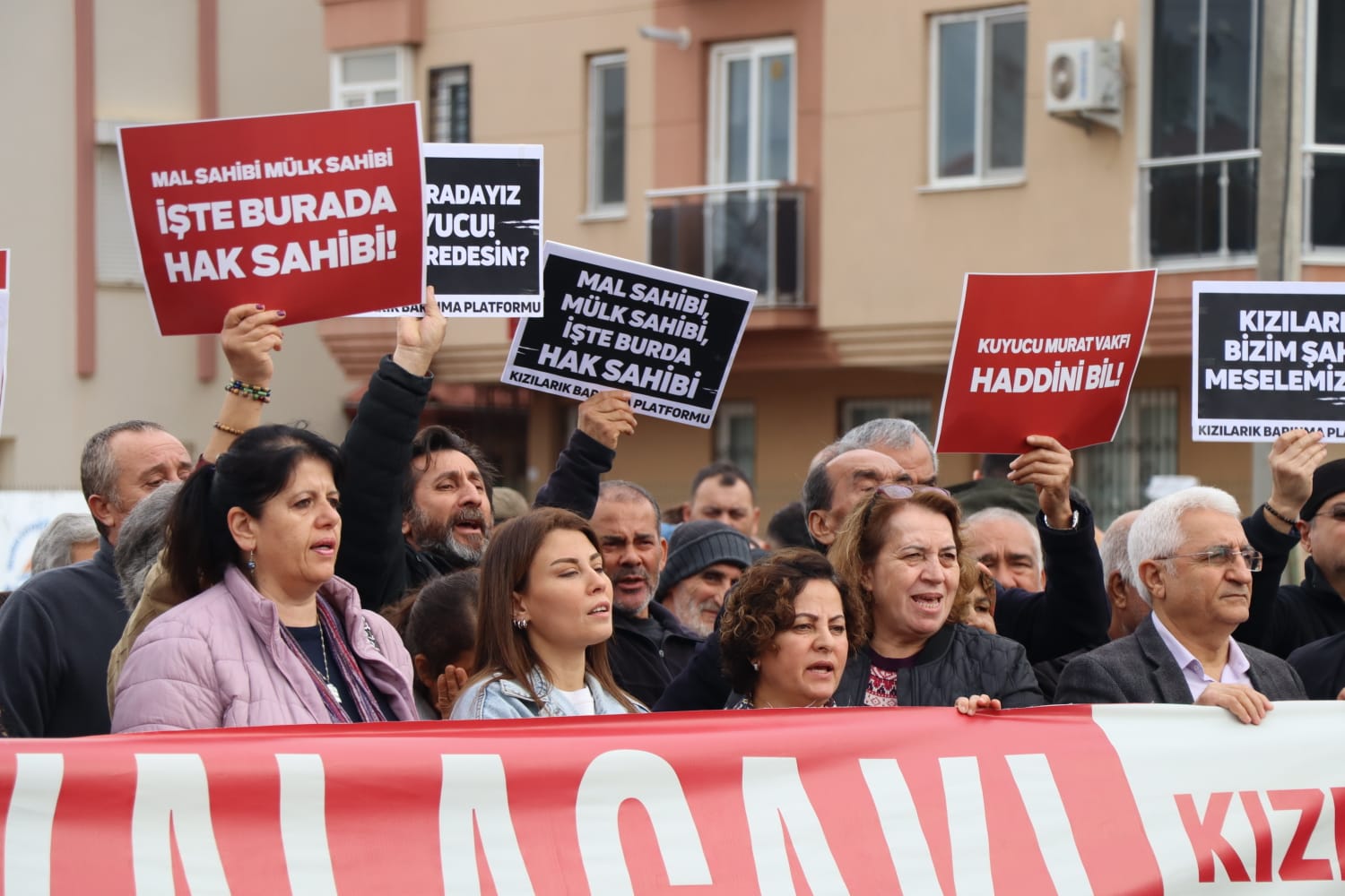 Kızılarık Barınma Platformu yönetiminde bulunan Kutay Meriç, “1.5 yıldır haklı bir mücadeleyi sürdürüyoruz. 22 yıldır bu iktidar tarafından, ‘Toplu konut yapıldı, barınma sorunu çözüldü’ deniliyor ama bu gerçek değil. Kentsel dönüşüm ve benzeri uygulamalar ile bir kısım vatandaş konut sahibi yapılırken bir kısım vatandaş ise evsiz bırakıldı. Vakıfların burada bize yaptığı uygulamalar ile yüz binlerce vatandaş bu ülkede evsiz bırakıldı. Barınma kutsal bir haktır. Bu hakkın yok edilmesine karşı sürdürdüğümüz onur mücadelenin gereğini yapacağız” dedi.