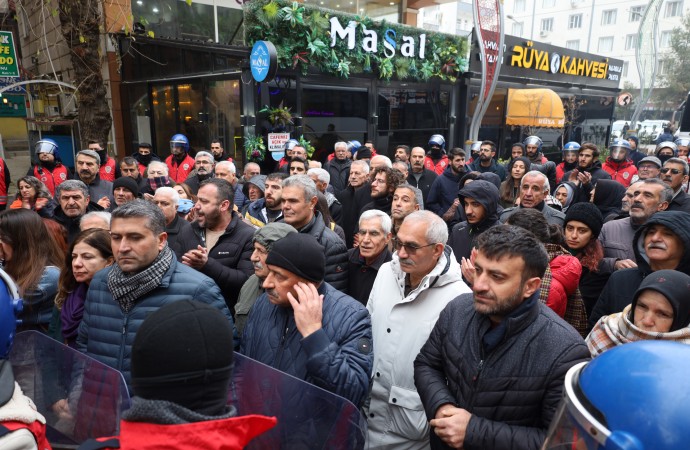 Polis gazetecileri kalkanlarla ablukaya alıp açıklamanın çekilmesine engel olmaya çalıştı. Polisin engelleme girişime rağmen yapılan basın açıklamasında şunlar söylendi: