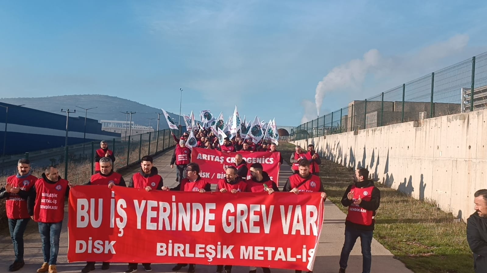 Tayyip Erdoğan’ın yasaklama kararına rağmen grevlerini sürdüren metal işçileri patronları masaya oturttu. Birleşik Metal-İş yaptığı açıklamada GE Grid Solutions, Hitachi Energy, Schneider Elektrik, Arıtaş Kriyojenik’te grevler devam ederken metal patronlarının sendikası MESS’ten davet geldiğini belirtti. Hitachi Energy için yapılan teklife dair sendikanın açıklaması şöyle: