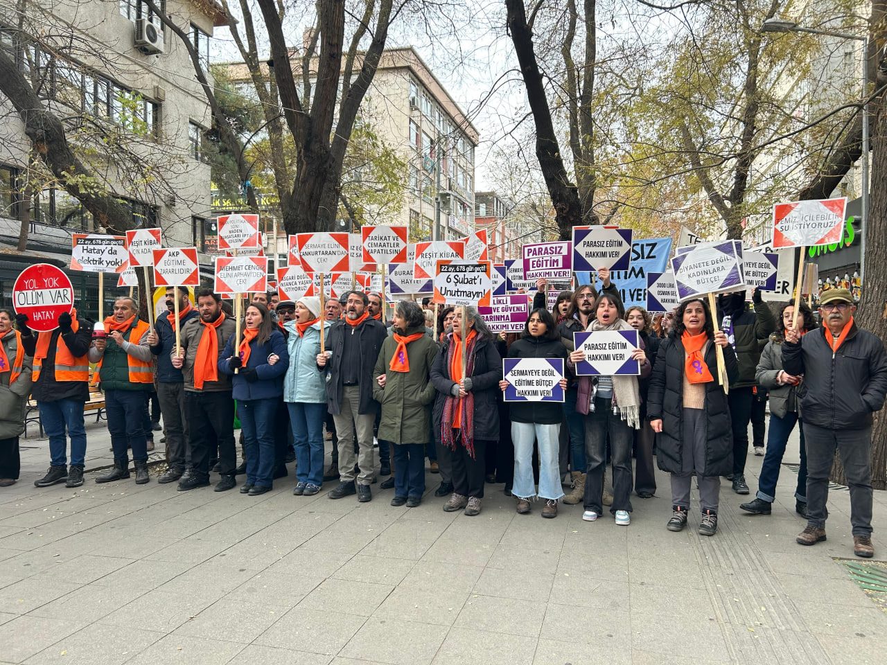 Dostlar! Dört yanımızı savaş yangınları sarar ve ülkemizi yönetenler halklara ve emeğe karşı açılmış bir savaşın bütçesini hazırlarken, işçi sınıfının sesini başkentte yükseltmek üzere toplandık! Savaş, sınırlarımızın ötesindeki uzak bir tehdit değil. Savaş ülkemizde, işyerimizde, okulumuzda, hastanemizde, sokağımızda, ormanlarımızda, mutfağımızda. Ortadoğu’nun ezilen halklarına çevrilen namluyu, AKP iktidarının emeğe karşı açtığı savaştan tanıyoruz. Emeğimize, haklarımıza, özgürlüklerimize, yaşamımıza, barışa ve kardeşliğe sahip çıkmanın yolunun da, halka savaş açan bu iktidar karşısında işçi sınıfının barikatını kurmaktan geçtiğini biliyoruz! Ve işte bugün ülkenin dört yanında sermayeye karşı verilen emek, hak ve yaşam mücadelelerinin temsilcileri olarak buluştuk! Bu buluşma, ülkenin bütçesini hazırlarken halkın hiçe sayılmasına bir itirazdır! “İşte emeğin talepleri burada, hakkımızı verin, siz vermeyeceksiniz ama biz haklarımız için mücadele edeceğiz” dediğimiz bir ikazdır! Bu buluşma bir günlük bir eylem değil, bu halkı örgütsüz, siyasetsiz, hareketsiz bırakmayacağımızın sözünü verdiğimiz, ve yarın iktidarın karşısına daha örgütlü, daha güçlü dikileceğimize dair bir iddiadır!