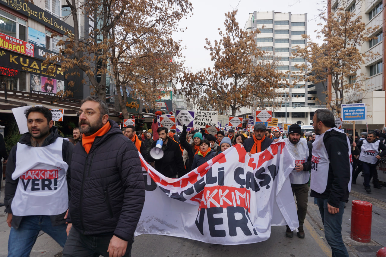 “İnsanca yaşam, güvenceli çalışma Hakkımı Ver” diyenler Türkiye’nin dört bir yanından Ankara’ya geldi. 2025 bütçesinin halkın ihtiyaçları gözetilerek hazırlanması, asgari ücretin insanca yaşamaya yetecek düzeye çekilmesi, sendikal örgütlenmelerin önündeki engellerin kaldırılması, güvencesiz çalışma biçimlerine son verilmesi, maden, enerji ve inşaat projeleri adı altında doğanın talan edilmesinin sonlandırılmasını talep eden yüzlerce kişi Çankaya Belediyesi önünden Meclis’e yürümeye çalıştı. Polisin defalarca kez saldırısına ve eylemi engellene girişimlerine rağmen yürüyüş, Kızılay’ın sokaklarına yayıldı