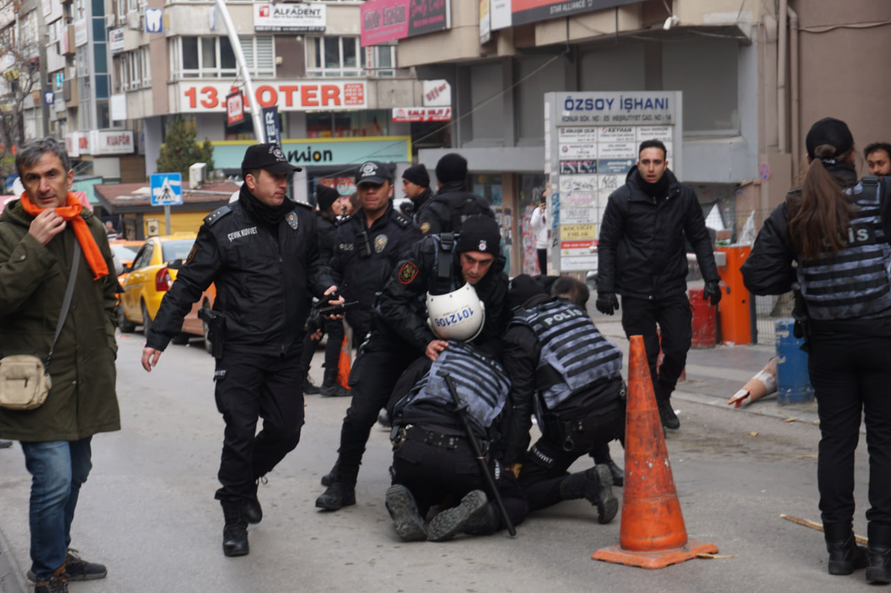 Polis, eyleme defalarca kez saldırdı. İlk bariyer, Çankaya Belediyesi önünde Ziya Gökalp Caddesi önünde kuruldu. Ziya Gökalp Caddesi’nde polis saldırısının ardından yürüyüş Selanik Caddesi üzerinden devam etti. Polis tekrar Selanik Caddesi ile Yüksel Caddesi kesişiminde saldırdı. Polis saldırısı ve engelleme girişimine rağmen yürüyüş Olgunlar Sokak’a kadar devam etti. Polis saldırılarında aralarında Sendika.Org muhabirleri Tankut Serttaş ve Nisan Çıra’nın da bulunduğu toplamda 53 kişi gözaltına alındı. Gözaltına alınanların yanı sıra polis saldırısında yaralananlar da oldu.