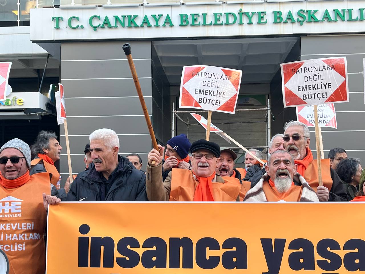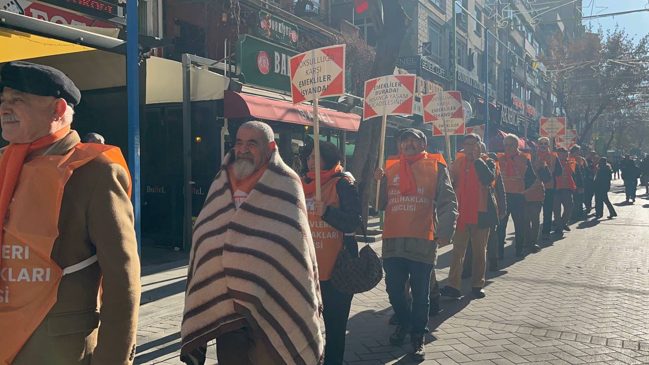 Halkevleri Genel Merkezi’nden tek sıra halinde Sakarya Caddesi’ne yürüyen emekliler yürüyüş sırasında “İnsanca yaşamak istiyoruz!”, “Sermayeye değil, emekçiye bütçe!”, “Emekliyiz, haklıyız, kazanacağız!”, “Emekliler yürüyor, mücadele büyüyor!” sloganları attı.