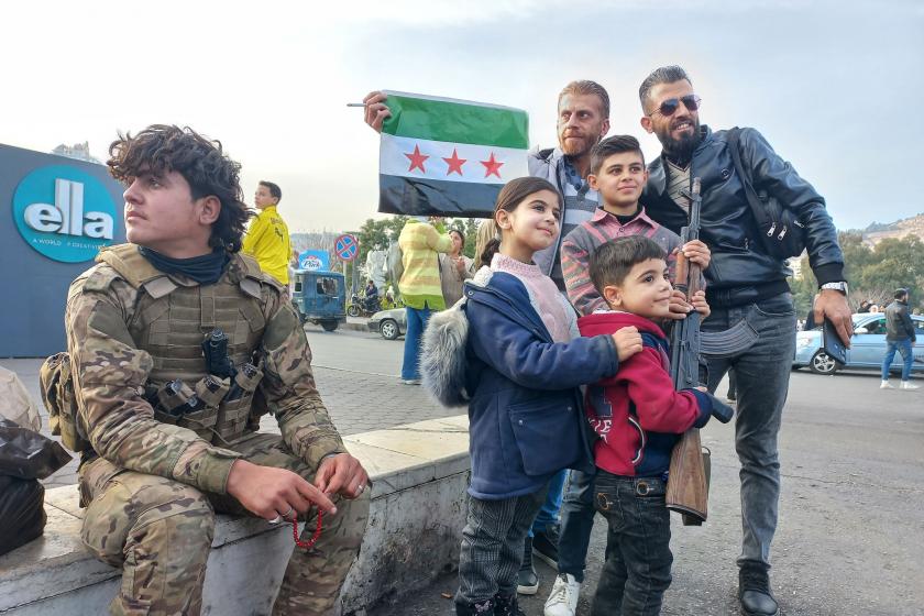 Şam’ın merkez meydanlarından biri olan Emevi Meydanı’nda küçüklü büyüklü gruplar sevinç gösterileri yapıyordu. Muhalifler ve İslamcıların bir kısmı açısından manevi bir anlamı da olan; bir tarafında Suriye devlet televizyonu binası, bir tarafında ise eski yönetimin iktidar sembollerinden biri olan hava istihbarat binası olan meydanın ortasında bir tank vardı. Orada mıydı, sonradan muhalifler tarafından mı oraya getirilmişti bilmiyorum ama çoğu genç erkeklerden oluşan gruplar tankın üstünde sloganlar atıyordu. Aileler çocuklarını tankın üstüne çıkarıp hatıra fotoğrafları çekiyordu. Meydanda çok da göze çarpmayacak sayıda silahlı, kamuflaj kıyafetli gençler vardı. İnsanlarla ilişkileri çok sıcaktı, sürekli birileri ile fotoğraf çekiliyorlardı ya da fotoğraf için silahlarını ödünç veriyorlardı.