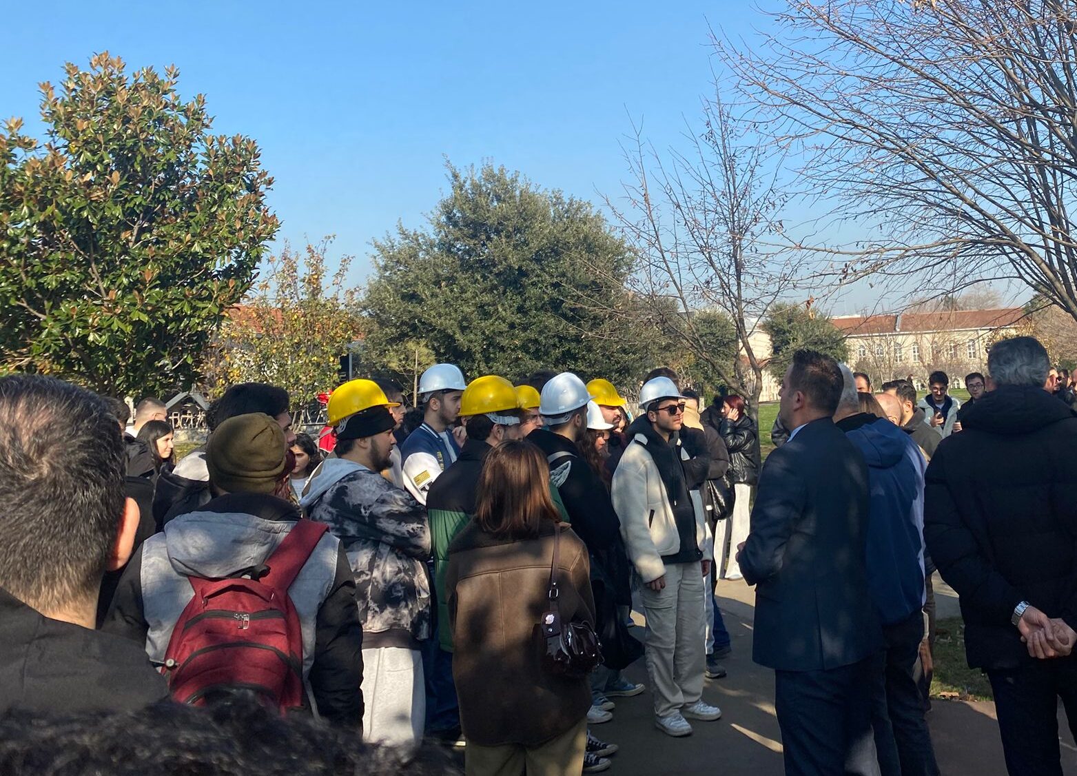 Yıldız Teknik Üniversitesi öğrencileri, geçen hafta kütüphanedeki tavanın çökmesinin ardından bugün (18 Aralık) kafalarına taktıkları baretleri ile rektörlük önünde bir araya geldi. Üniversiteliler kampüsteki otobüslerin ring sayılarının azaltılması ve kampüste internetin çekmemesini de problemler arasında sıralayarak taleplerini açıklamak istedi. Üniversitelilerin eylemine okulun özel güvenliği müdahale etmek istese de açıklama yapıldı.