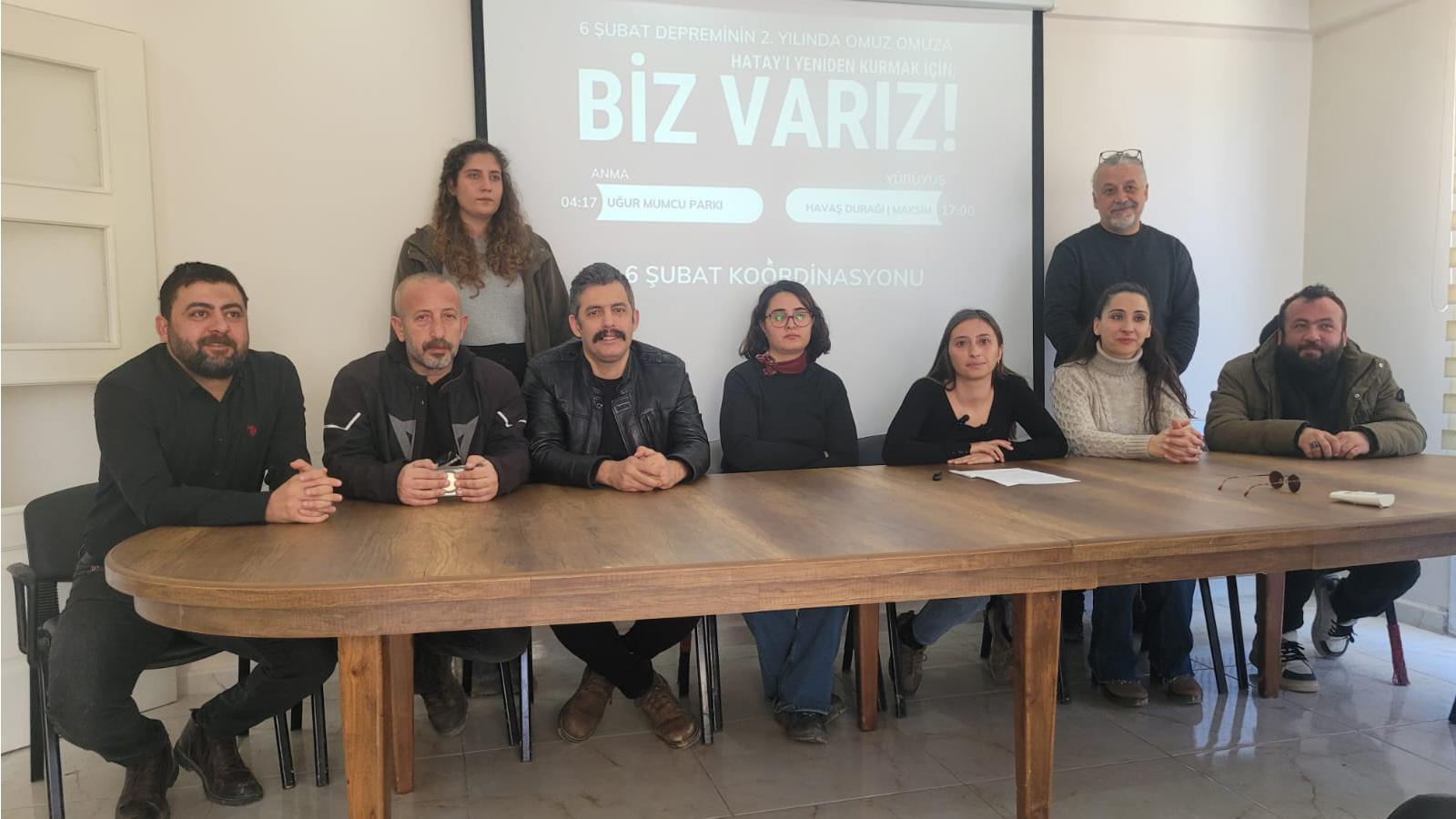 6 Şubat depremlerinin 2. yıldönümü yaklaşırken bulunduğu her alanda halkın kavgasını büyütenler; Halkevleri, Defne Halk Temsilcileri, Defne Değişim Hareketi, Kuzeytepe Sosyal Yardımlaşma ve Dayanışma Derneği, Mozaik Derneği, Türkiye Komünist Partisi, Toplumsal Özgürlük Partisi, Tüm Öğretmenler Birliği Sendikası ve Yaşam Hakkı Meclisleri olarak yan yana geldik ve kamuoyuna ilan ediyoruz ki insanca bir yaşam için direnenleri 6 Şubat günü omuz omuza sokağa taşımak üzere 6 Şubat Koordinasyonu’nu kurduk.