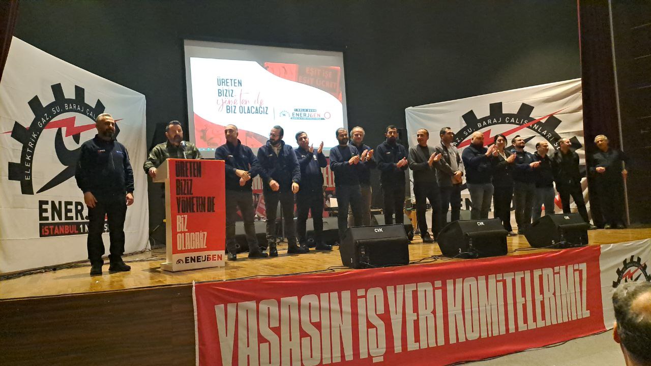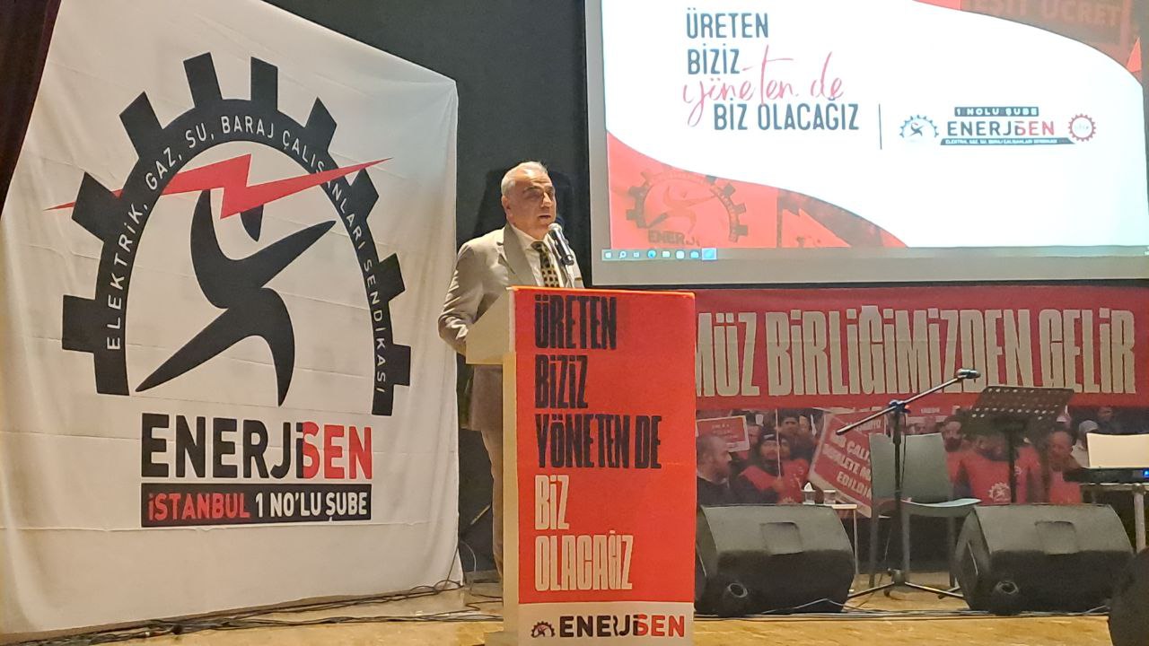 Karabulut toplu iş sözleşmesi sürecinde işyeri ve birim komiteleri kurduklarını, resmi temsilci sayısının çok üstünde işçi grubuyla birlikte toplu iş sözleşmesi taslaklarını hazırladıklarını hatırlattı. Sözün, yetkinin ve kararın işçide olduğu bir toplu iş sözleşmesi sürecinin sadece enerji işçilerine değil, Türkiye işçi sınıfına da borçları olduğunu söyledi.