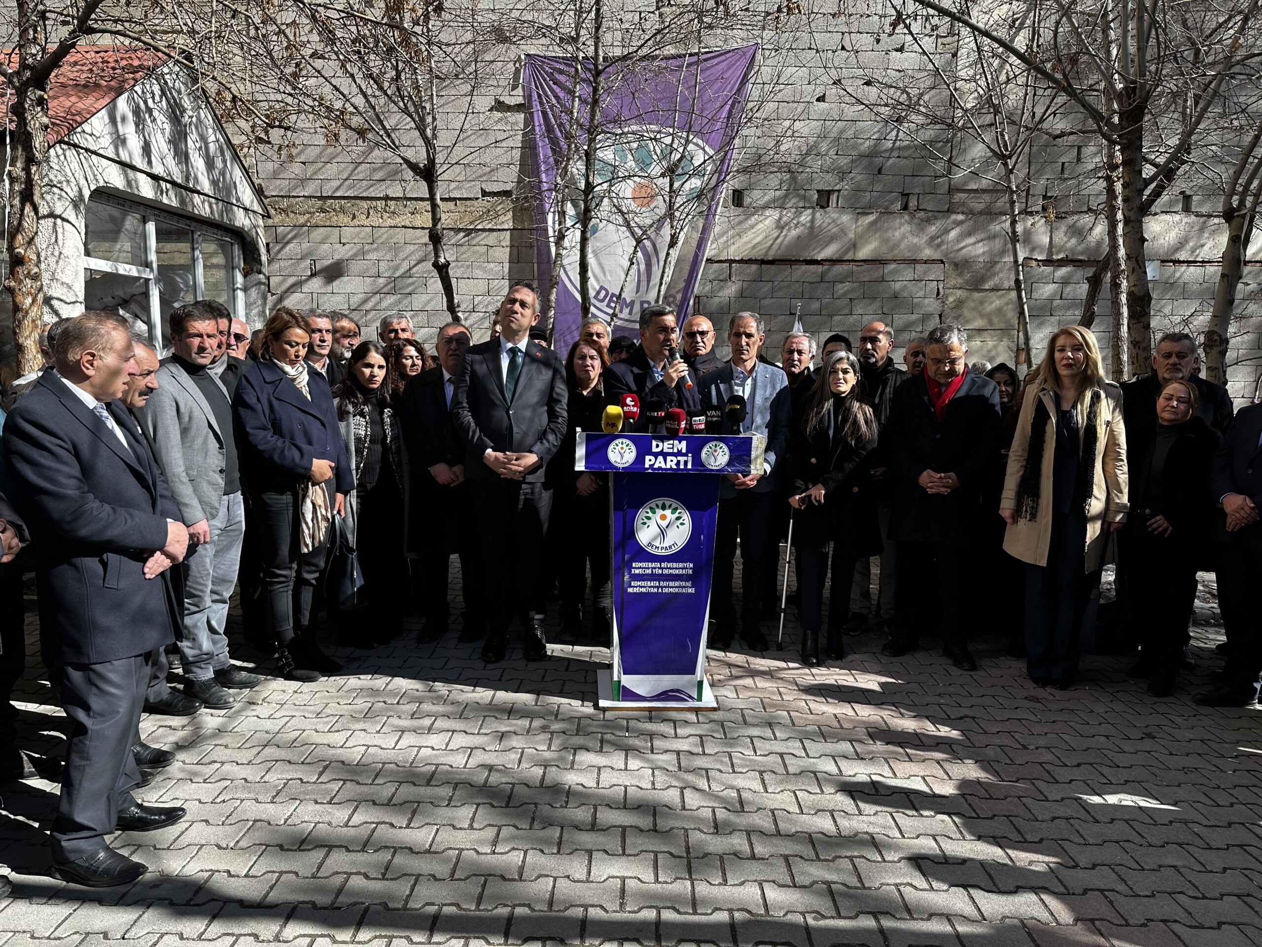Dolayısıyla buradan Türkiye halklarına seslenmek istiyoruz: Bu saldırılar karşısında toplumsal barışı ve birlikte yaşama iradesini her koşulda savunmaya devam edeceğiz. Buradaki kayyum gasplarının öyle anlatıldığı gibi yasayla, anayasayla ya da tırnak içerisinde bir suçla alakası yok. Sadece ve sadece halkın kaynaklarını kendi yandaşlarına peşkeş çekme anlayışı var. Dolayısıyla bizim umudumuz Türkiye toplumudur; vicdanlı olan, hukuka ve adalete inanan, halkın iradesine inanan 85 milyon yurttaşımızdır. Biz inanıyoruz ki 85 milyon yurttaş çaresiz değildir. Mutlaka hukuku ve demokrasiyi tesis edecek alternatifleri kendisine yaratacaktır. Türkiye’nin geleceğini, 85 milyon insanın geleceğini karartan bu bir avuç kayyum şakşakçısına ve hırsızlık heveslisine ortalığı bırakmayacaktır. Halkımıza, Türkiye toplumuna ve vicdanlı insanlara güveniyoruz. Elbette bu karanlıkları birlikte dayanışarak aşacağız. Gelen heyetimize teşekkür ediyoruz.