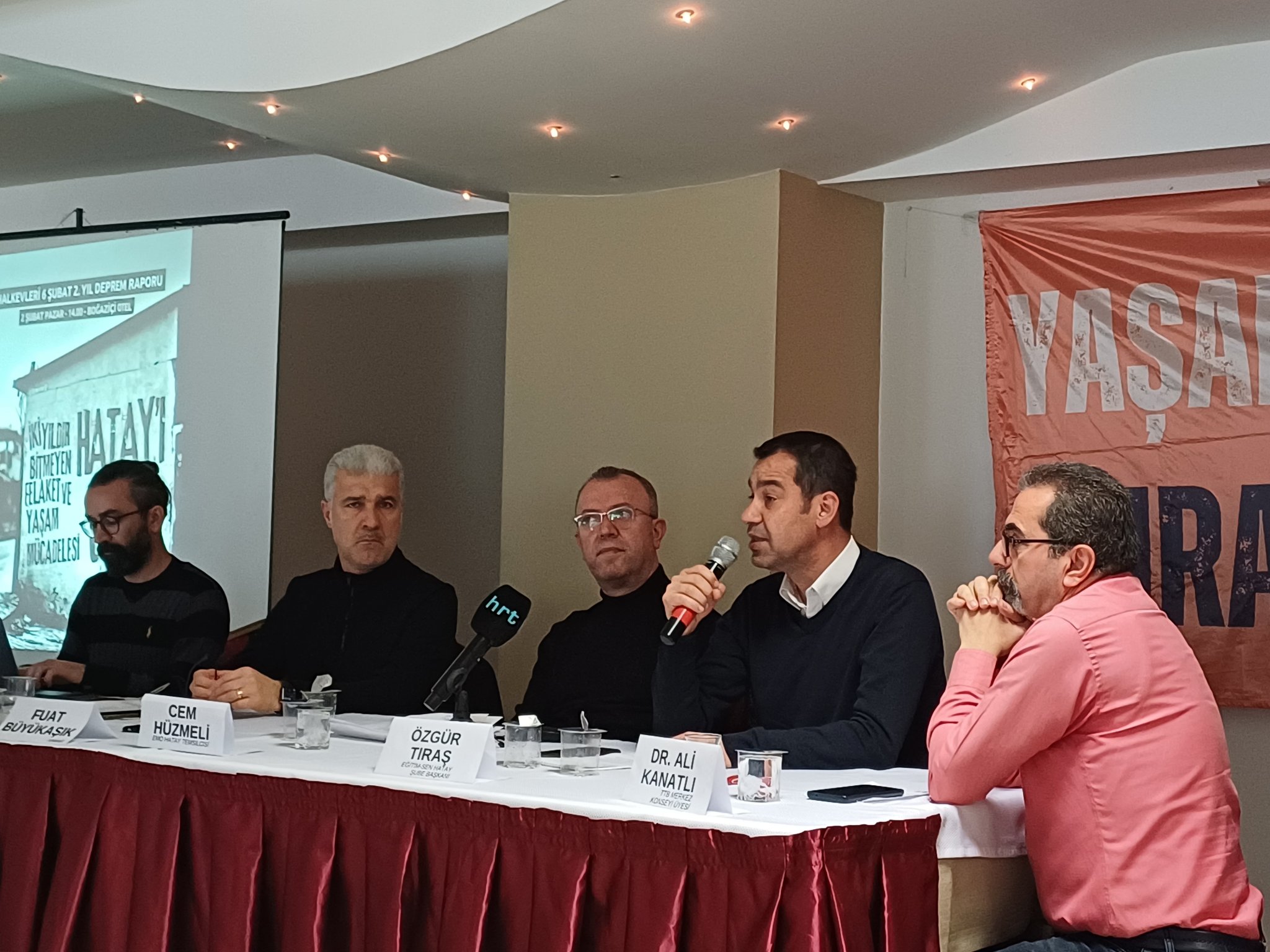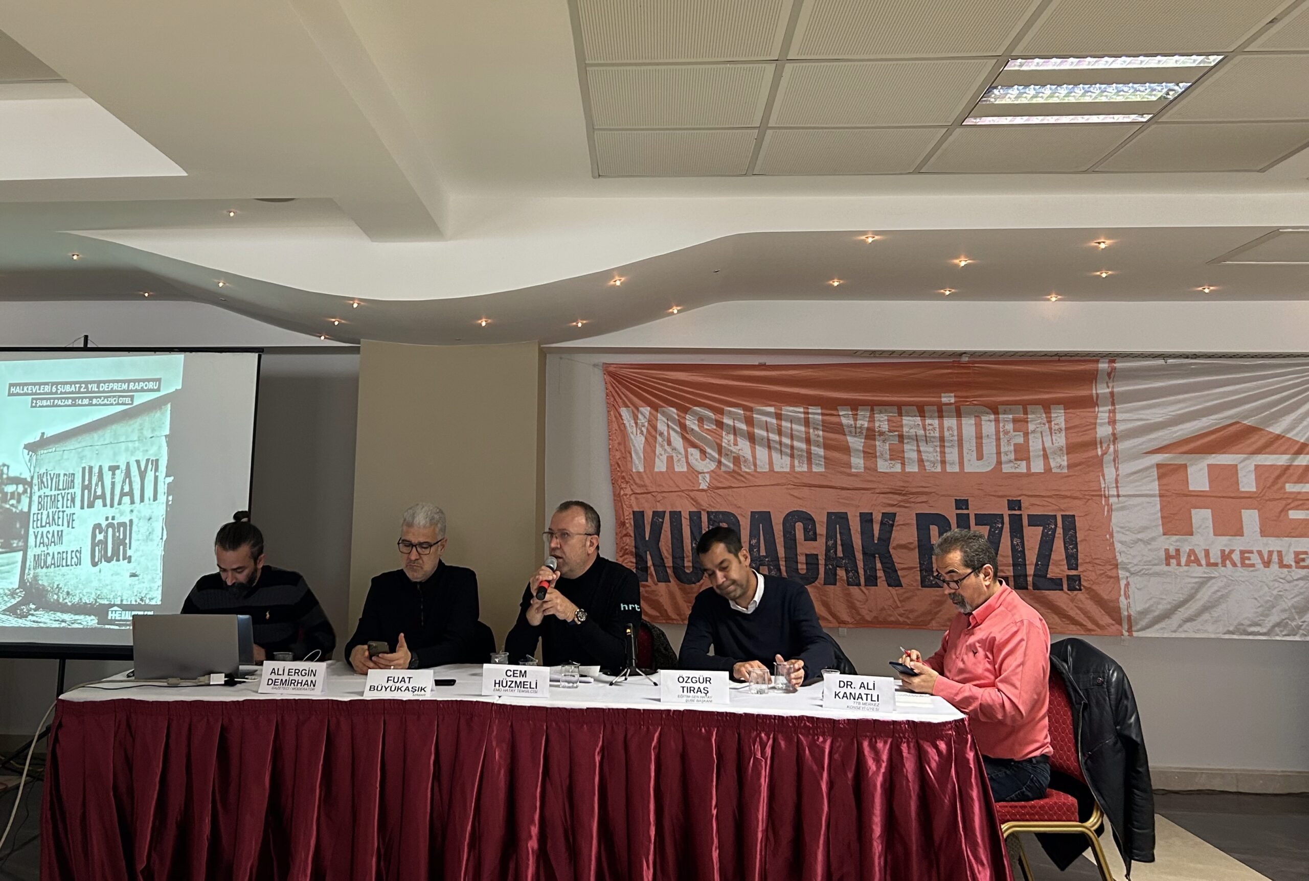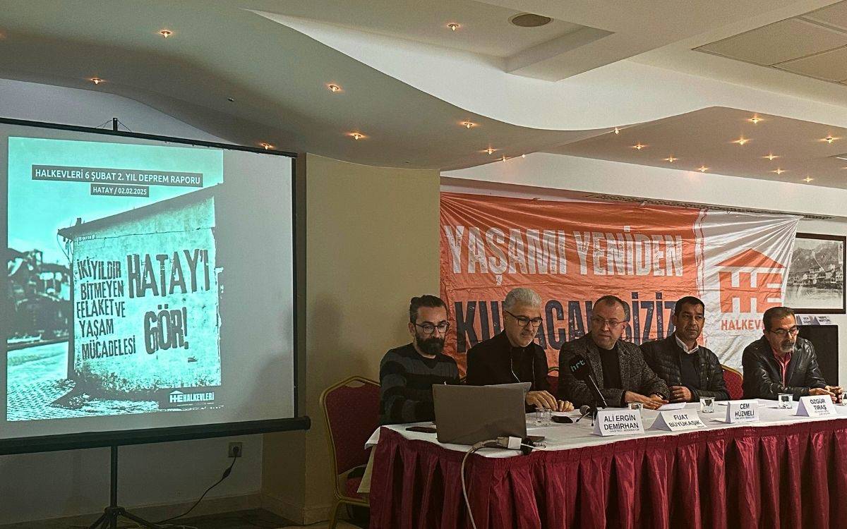 Halkevleri’nin 6 Şubat depremlerinin ikinci yıldönümü yaklaşırken Hatay’da düzenlediği “Hatay’ı Gör” başlıklı buluşmada, İkinci Yıl Hatay Deprem Raporu’na katkı sunan isimler “kentin yeniden inşası ve mimarlık”, “enerji”, “eğitim”, “sağlık”, “hukuk”, “çevre” ve “medya” alanlarında sunumlar yaptı