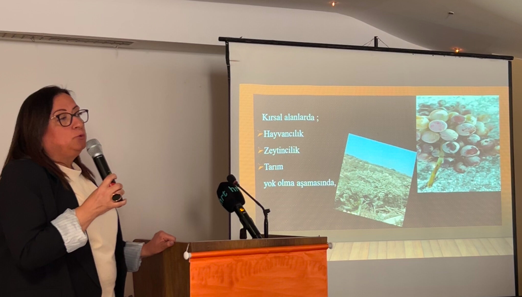 Antakya Çevre Koruma Derneği Başkanı Nilgün Karasu yaptığı “Çevre ve Ekoloji” sunumunda Hatay’da hayvancılığın, zeytinciliğin ve tarımın bitme aşamasına geldiğini söyleyen Karasu, kentin inşaat şirketlerine teslim edildiğini ifade etti. “ÇED gerekli değildir” kararları ile açılan taş ocakları-beton santrallerinin kent ekosisteminde büyük bir yıkım yaratırken, Samandağ biberi gibi tescilli ürünlerin veriminde büyük bir kayıp yaşandığını vurguladı.