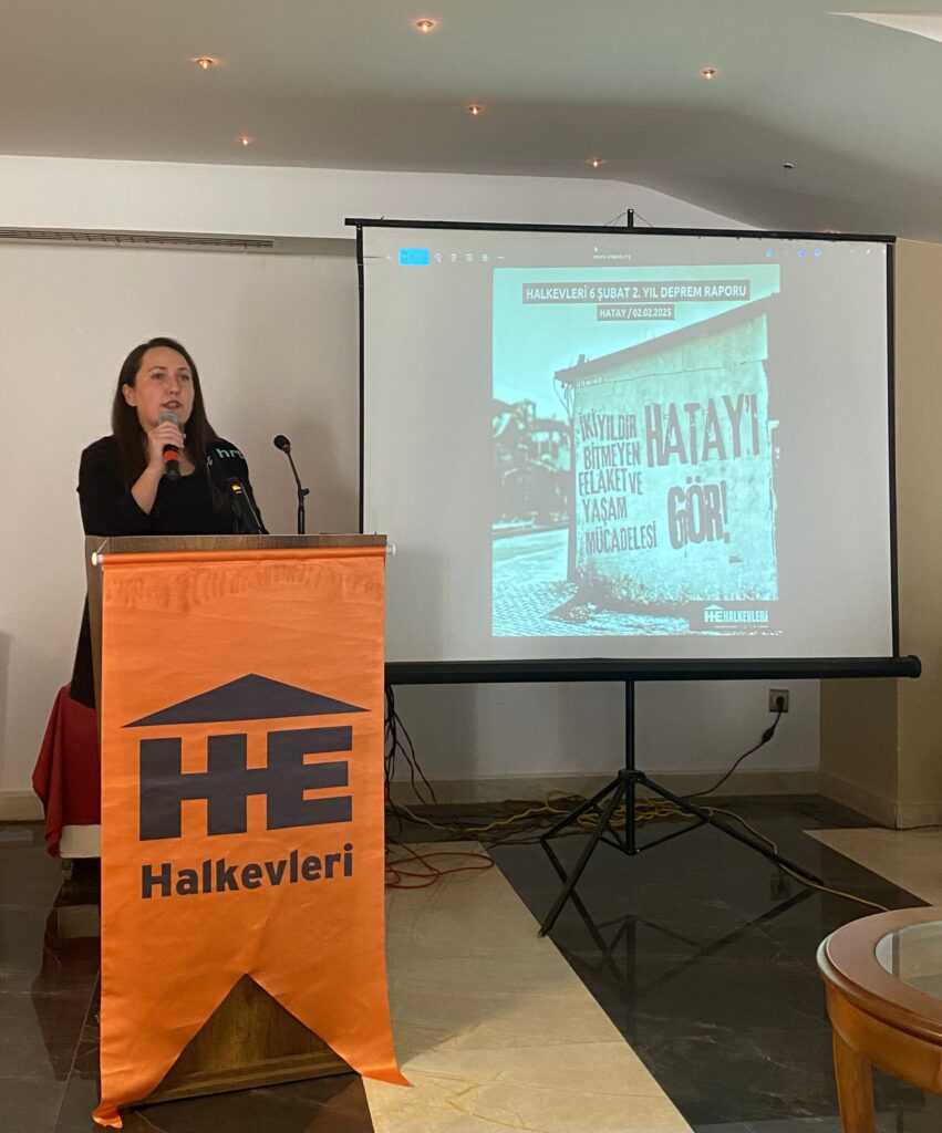 Hatay Halkevi, 6 Şubat depremlerinin ikinci yıldönümüne giderken 2 Şubat pazar günü Grand Boğaziçi Otel’de kentteki yaşam mücadelelerinin öznelerini bir araya getirdi. “Hatay’ı Gör” başlıklı etkinlikte, Halkevleri’nin İkinci Yıl Hatay Deprem Raporu’na katkı sunan isimler “kentin yeniden inşası ve mimarlık”, “enerji”, “eğitim”, “sağlık”, “hukuk”, “çevre” ve “medya” alanlarında sunumlar yaptı.