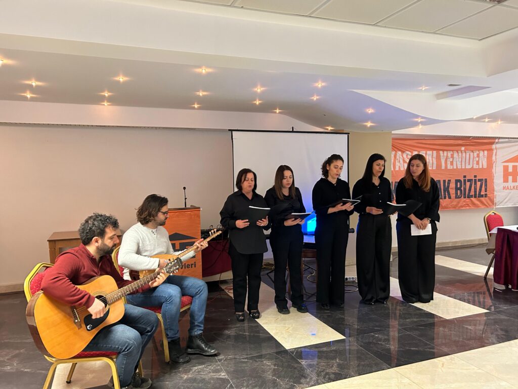 Hatay Halkevi Başkanı Eylem Mansuroğlu da depremin hemen ardından başlayan dayanışma seferberliği içinde kurulan Yaşam Meclisleri ve Yaşam Merkezleri deneyimlerinin iki yılını özetleyen bir konuşma yaptı. Mansuroğlu, barınmanın yanı sıra, sağlık, eğitim, enerji ve ulaşım hizmetlerinin de hâlâ asgari düzeyde sağlanmadığı kentte, halkın yaşam hakkını hiçe sayan politikalar nedeniyle ölümlerin sessizce geçiştirilmeye çalışıldığını, hayatta kalanlara “sosyal ölüm” dayatıldığını ve yaşam mücadelesinin her şeye rağmen sürdüğünü aktardı.