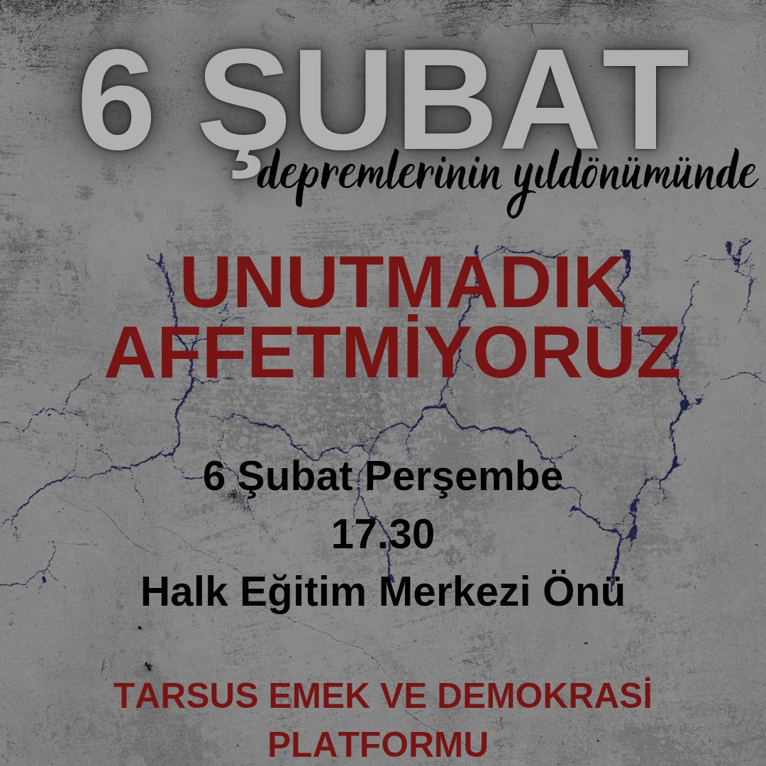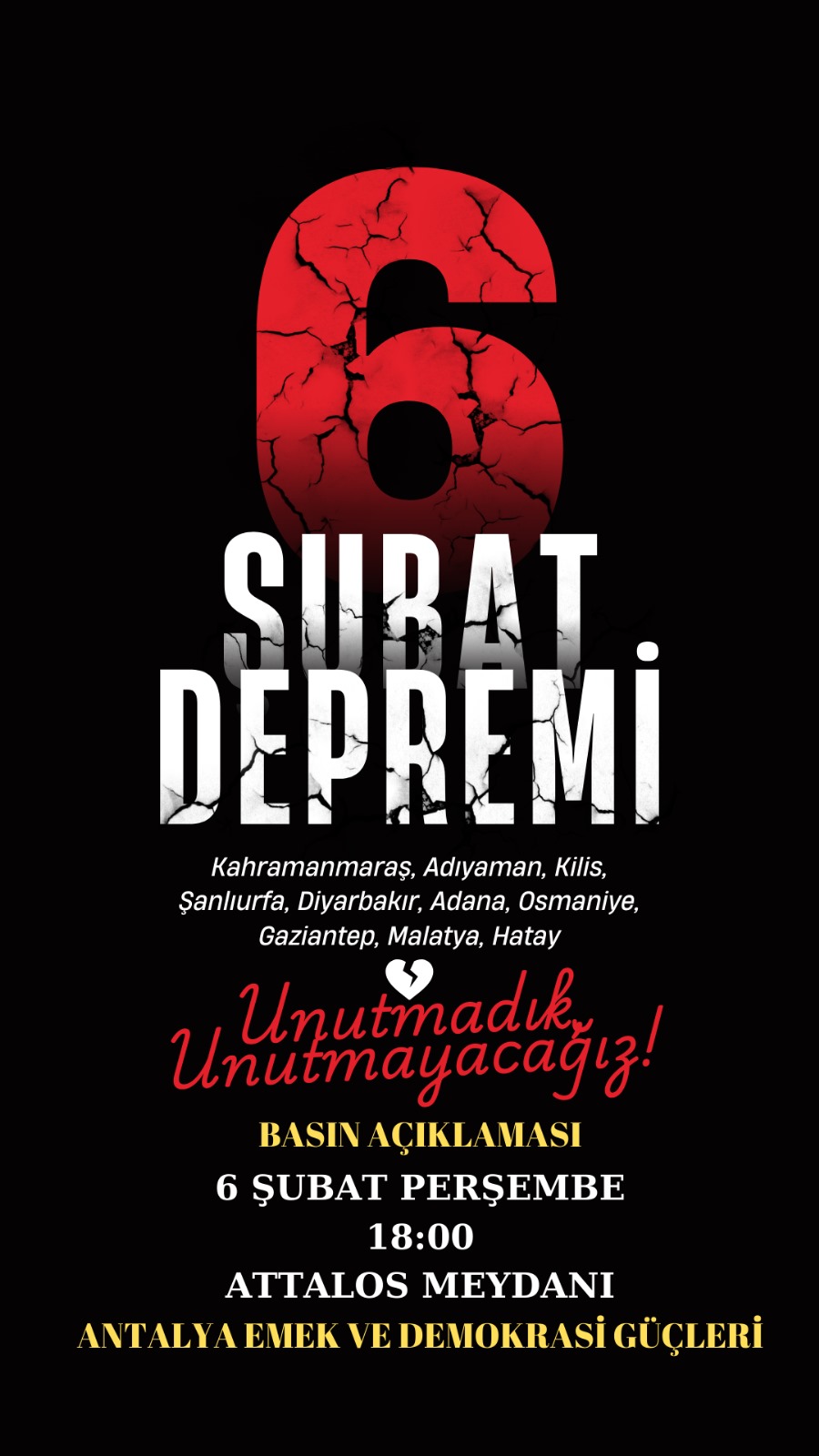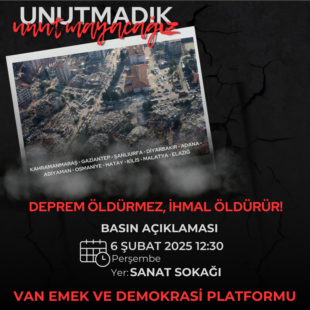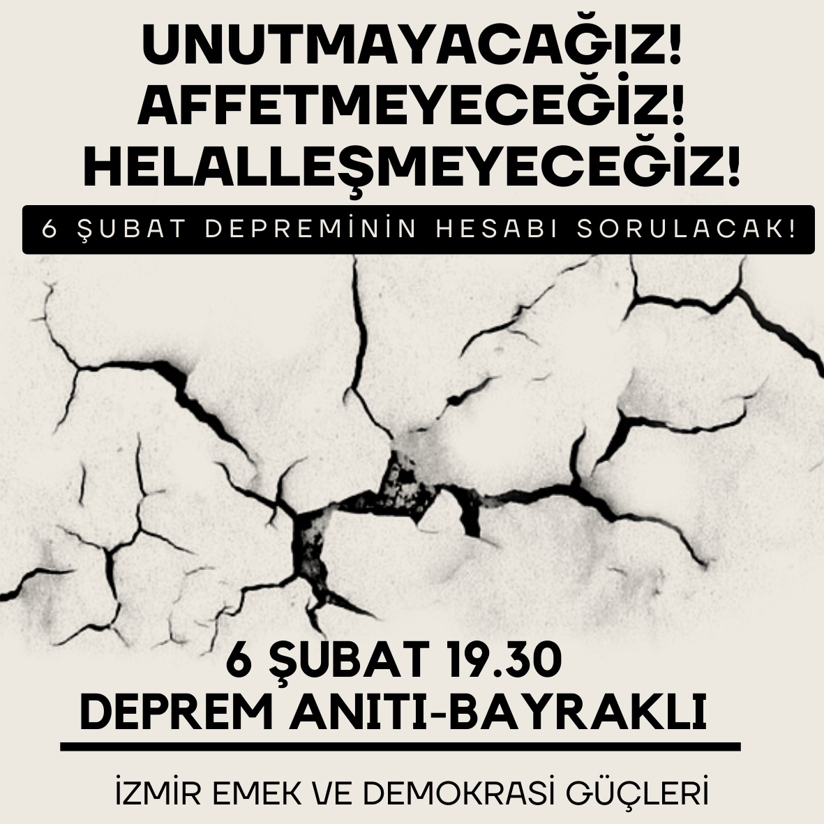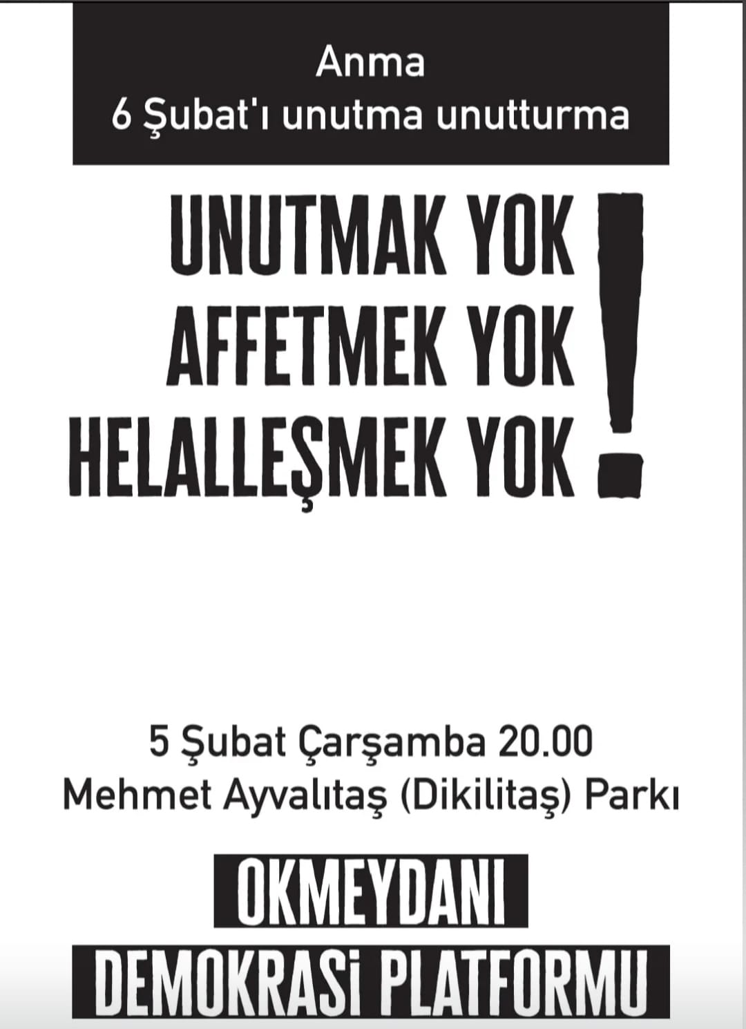 6 Şubat 2023’te kaybettiğimiz canlarımızı anmak ve acımızı paylaşmak için bir araya geliyoruz.